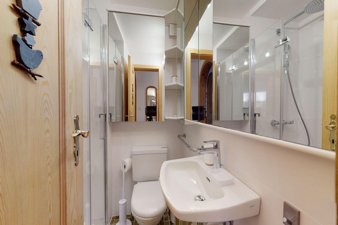Die Wohnung verfügt über einen Eingangsbereich mit Garderobe. Direkt anschliessend finden Sie die komplett ausgestattete Küche. Das grosszügige Wohn- und Esszimmer ist mit einem Esstisch und einer Sofa- und Fernsehecke ausgestattet. Von dort gelangen Sie auf die grosse Terrasse mit schöner Aussicht. Die Wohnung hat ein Elternschlafzimmer mit Doppelbett und zwei Schlafzimmer mit je zwei Einzelbetten. Ein Badezimmer ist mit Badewanne und WC und ein weiteres Bad mit Dusche und WC ausgestattet. Abstellraum für Skis ist vorhanden. Waschmaschine und Trockner zur Mitbenützung. Garagenbox vorhanden.