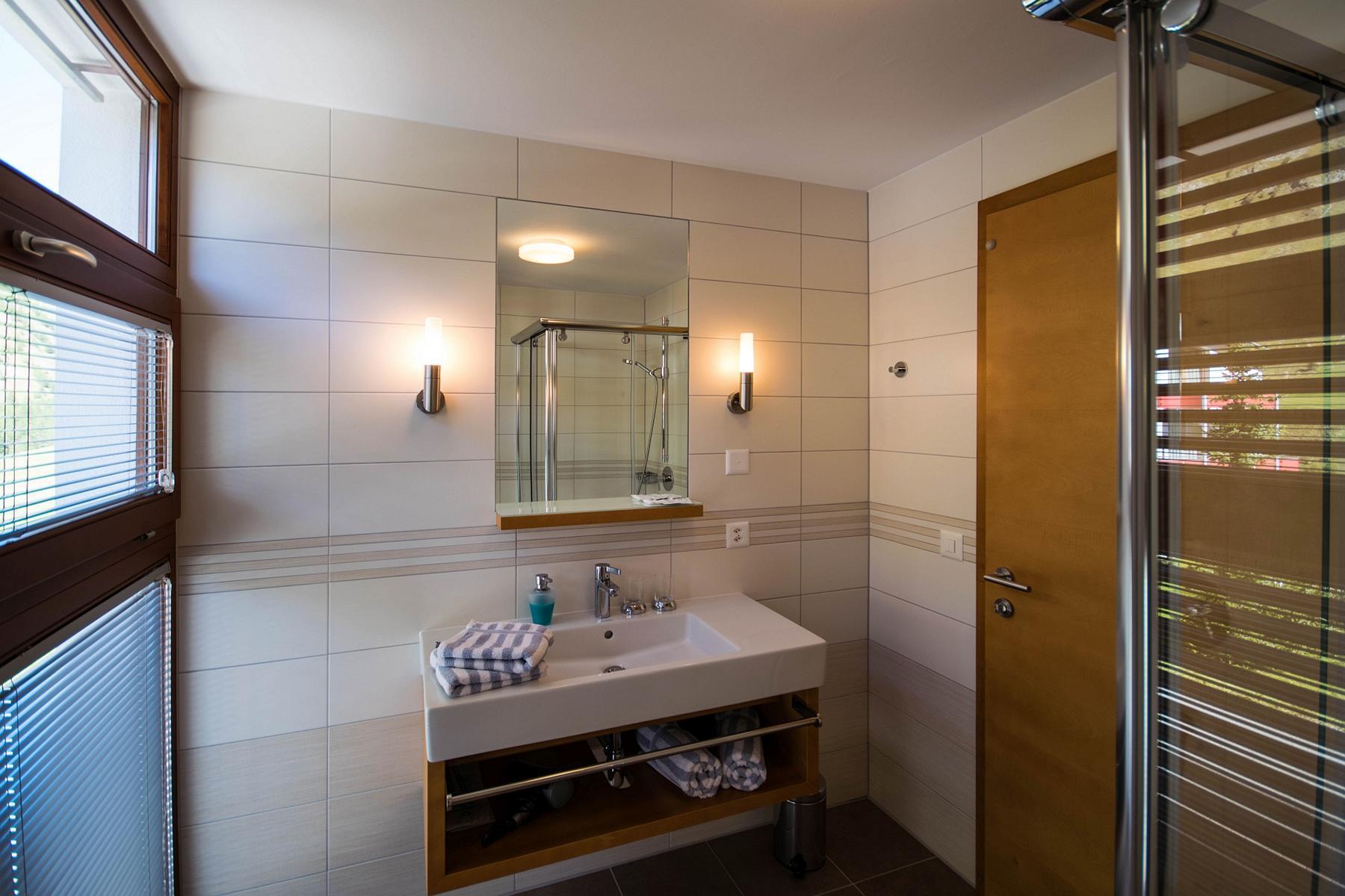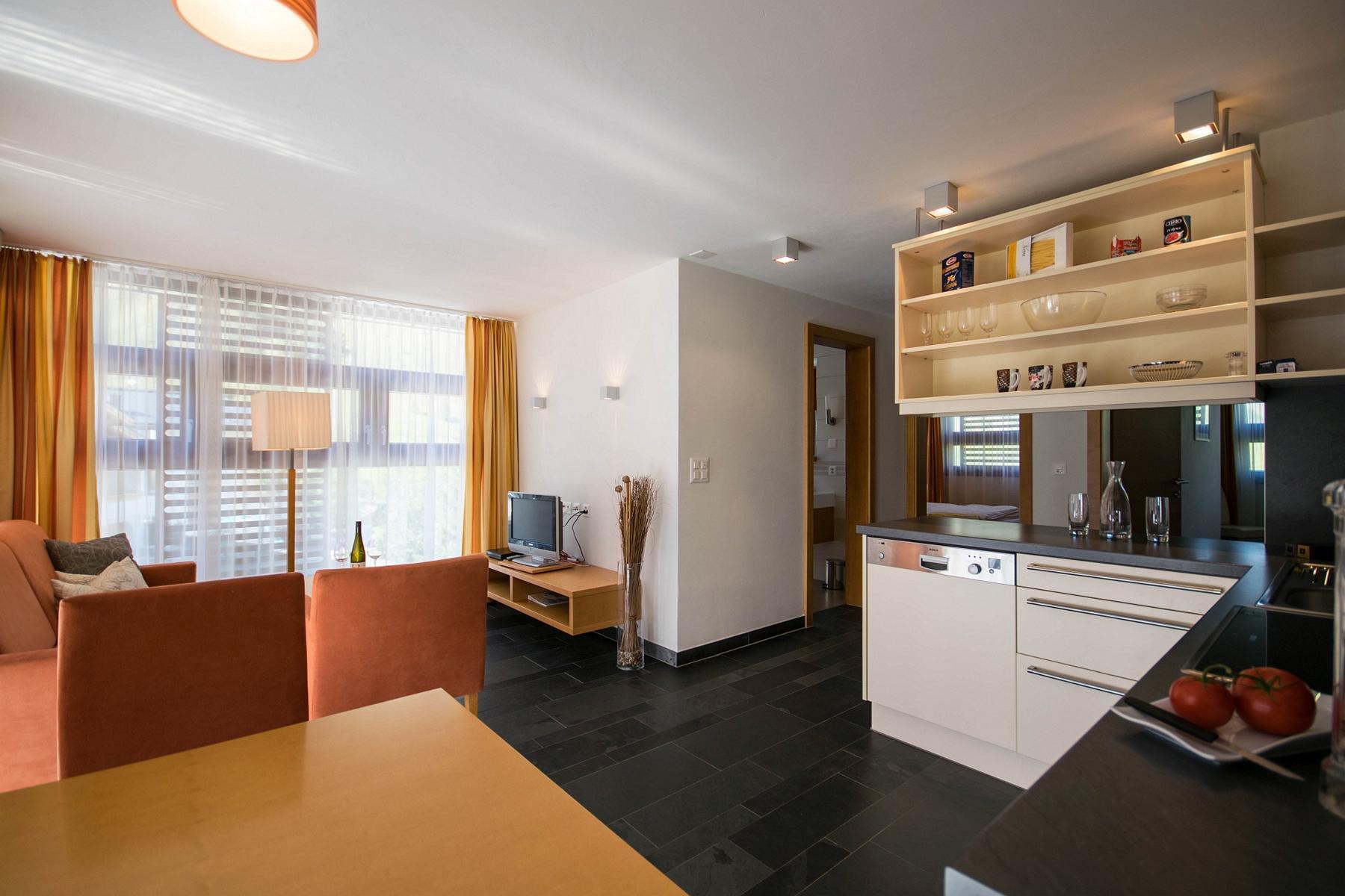 New, high quality furnished three-room apartment for 4-5 people (70m2) with large glass front, the living room is furnished with natural slate floor, 2 bedrooms, 2 shower / WC, large balcony with south view, flat TV, radio, W-Lan free, telephone, safe, hair dryer, dishwasher, oven, Nespresso and filter coffee machine, kettle, bread service. The 1st House on the slope to the cable car, which you can reach in a few minutes.