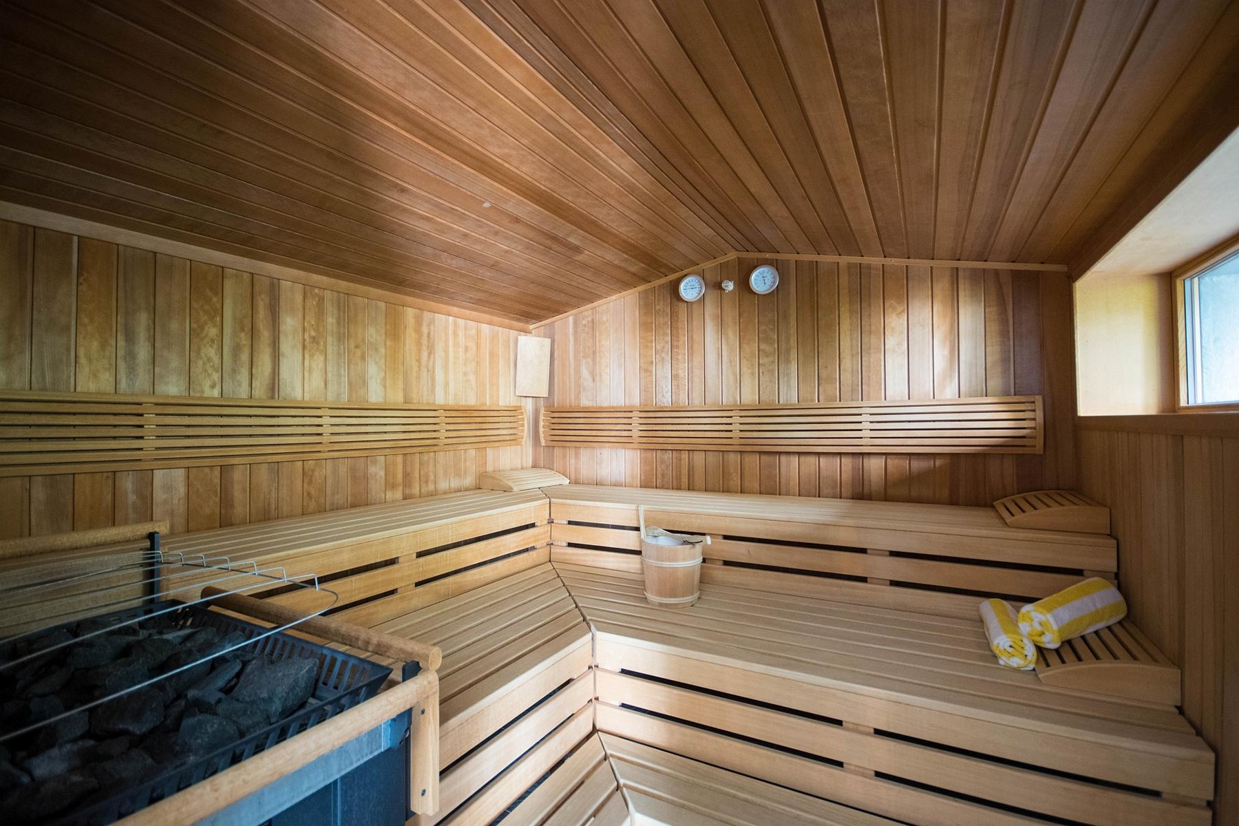 one room-flats for 2 persons (35m2) and 3 room-flats for 4-5 persons (70m2, 2 shower/WC each) SPA with sauna,,steambath and a relaxation room,