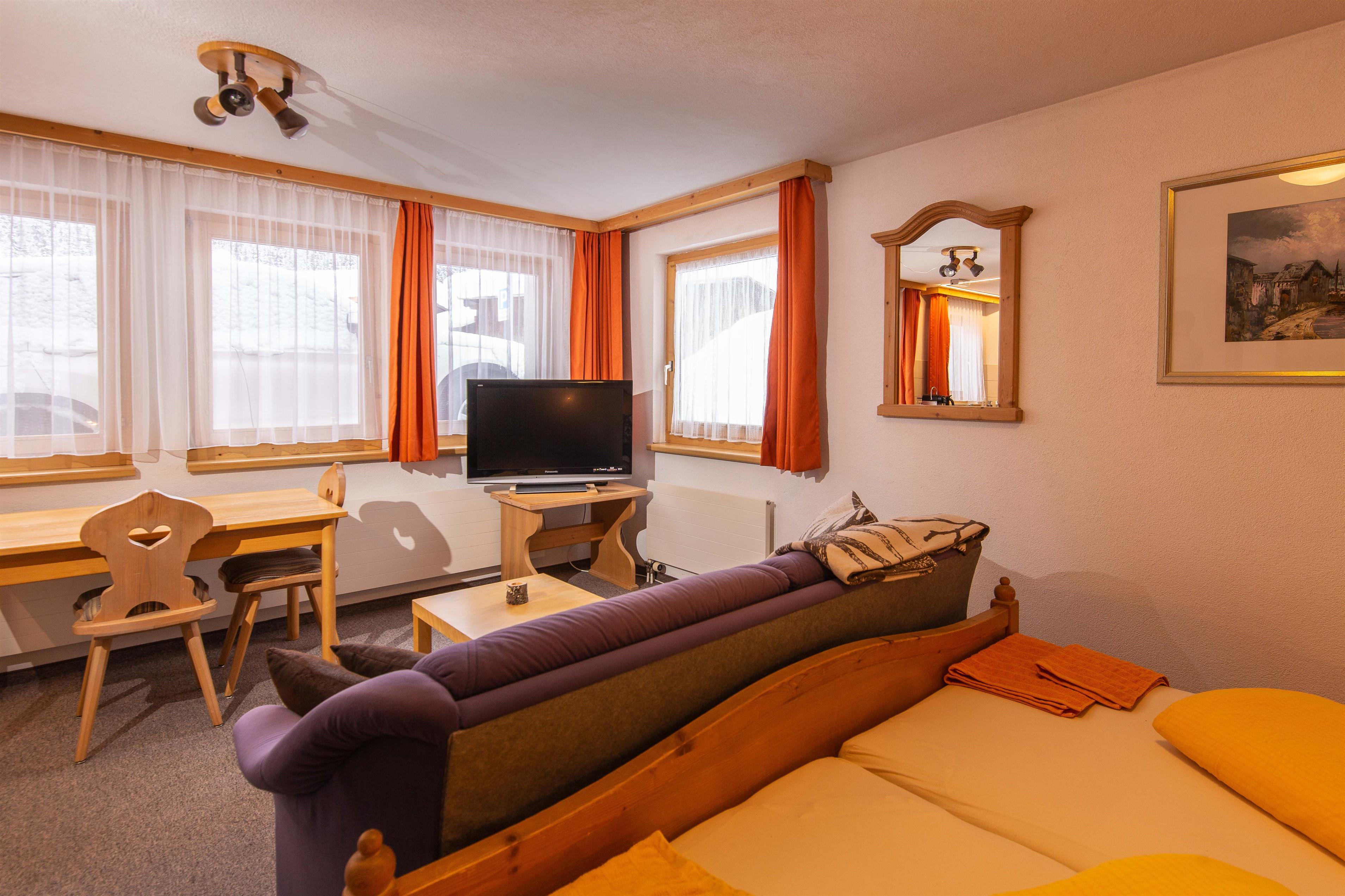 Cosy apartment house in a quiet, sunny location right next to restaurants, pizzeria, sports shop and bus stop. Mountain railways and ice rink are reachable in a few minutes on foot or with the free bus. All flats have TV and free WLAN.