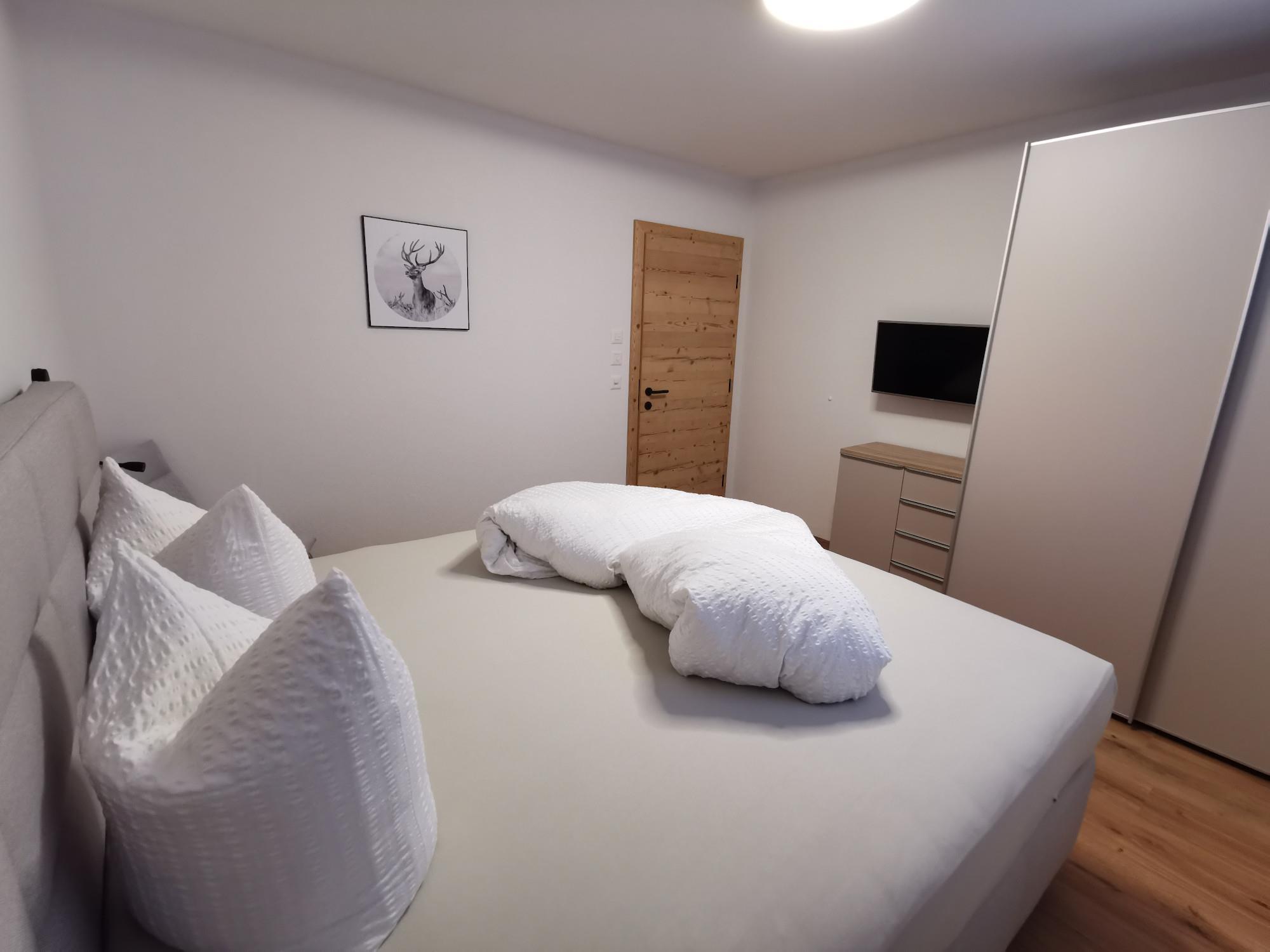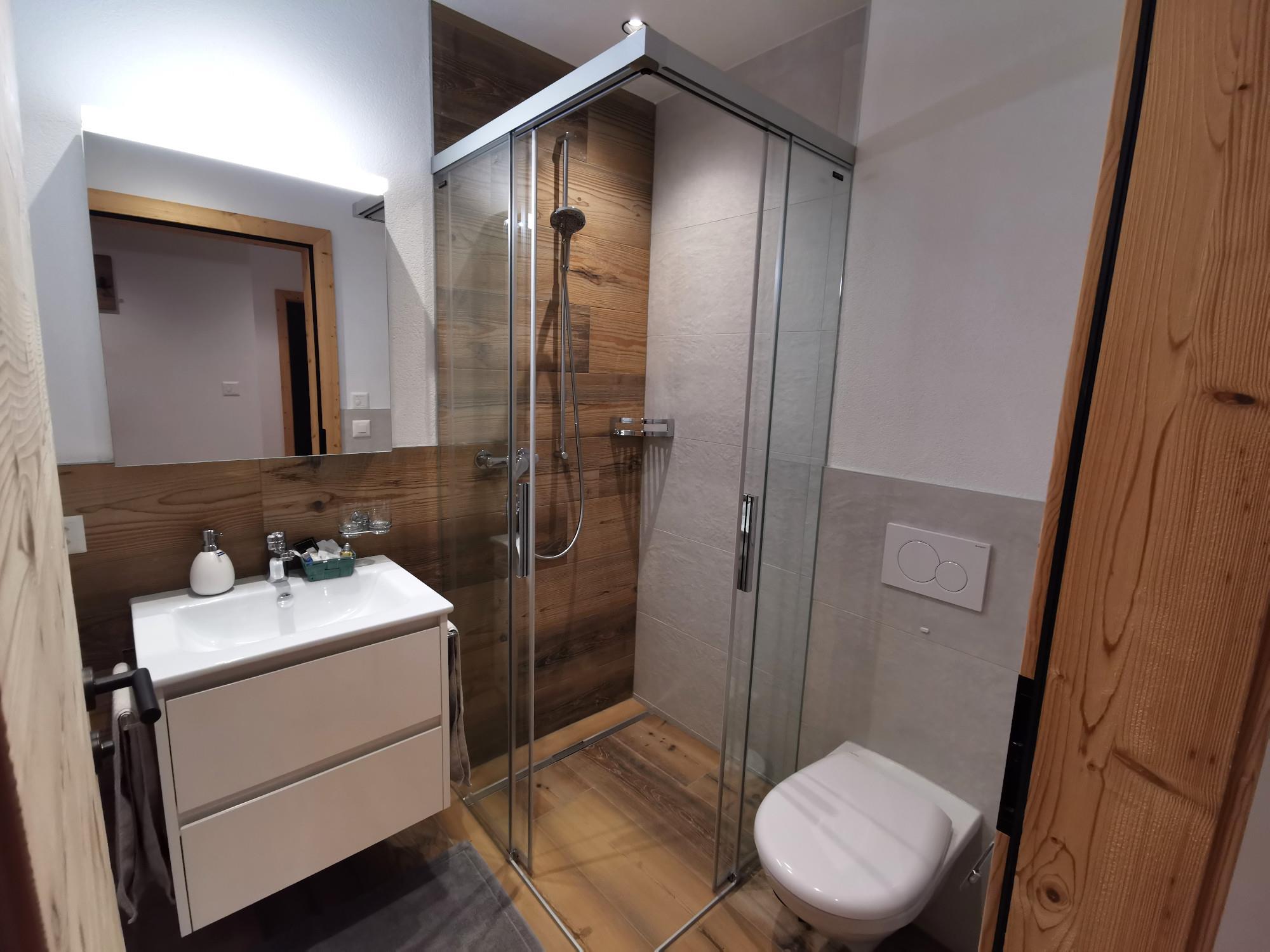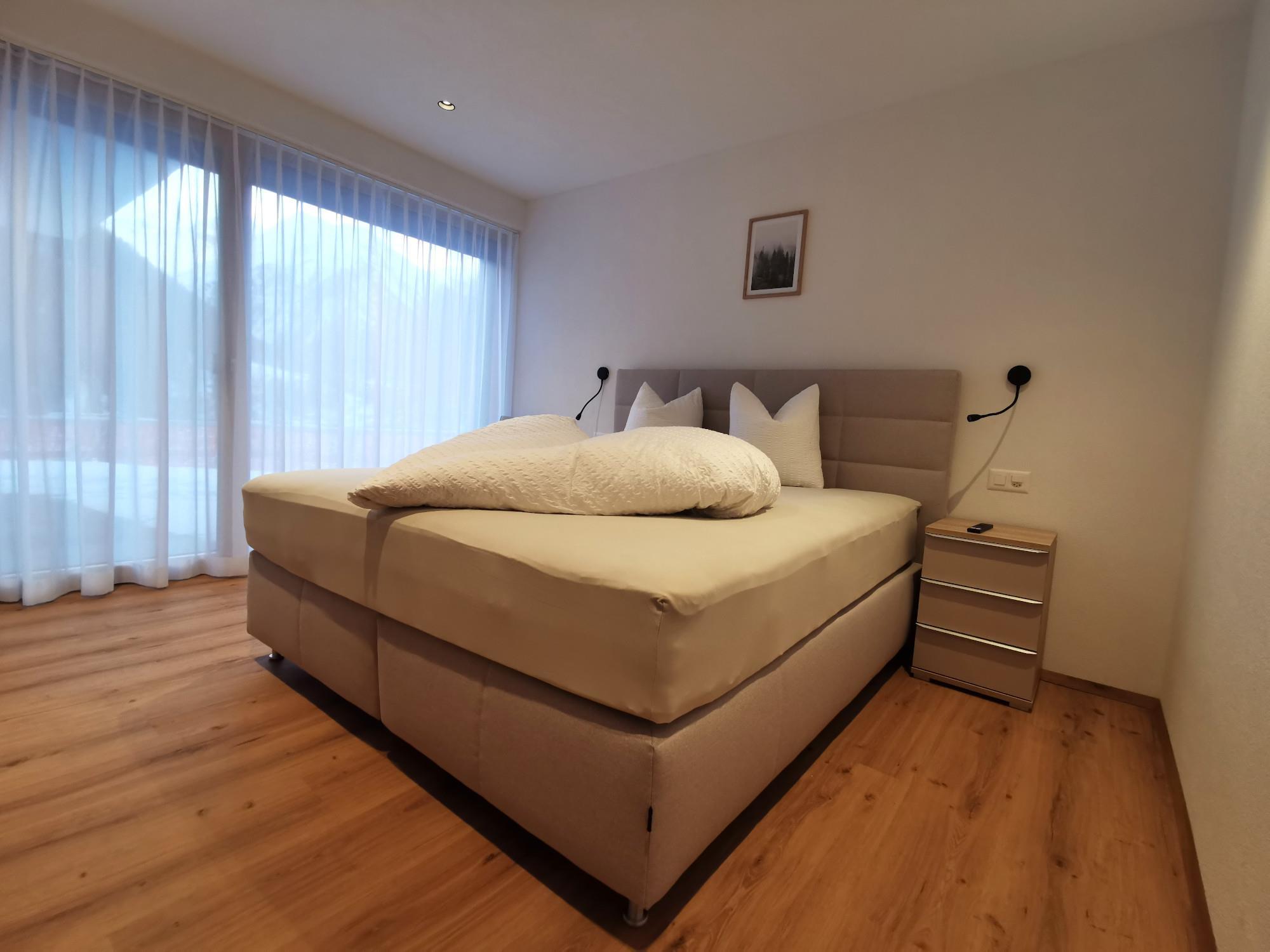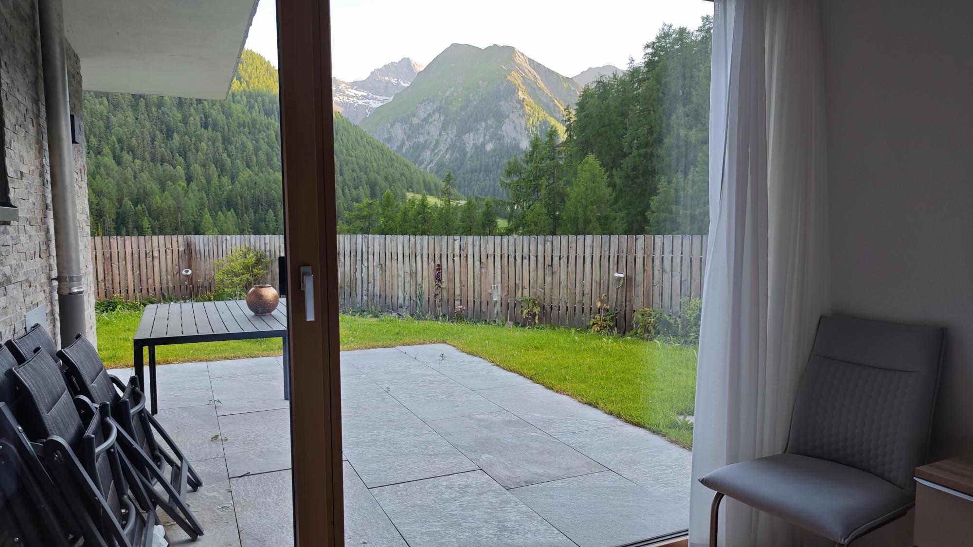 Modern and luxurious apartment in a very sunny and quiet location with a fantastic view of the Samnaun mountains. The apartment has two bedrooms with double bed, which are both equipped with a 32" TV and an in-room safe. The fully equipped open kitchen (oven / microwave, dishwasher, fridge / freezer, 4-plate hob, Nespresso coffee machine, washing machine) has a large dining table and a bench. The living room is equipped with a comfortable pull-out sofa and a 55" TV. All TV sets have SAT-TV and radio. Of course, free WiFi, as well as network connections are also available. From the living room and one of the bedrooms you can directly access the terrace / garden and enjoy a breathtaking view. In addition, the apartment has two bathrooms with toilet, walk-in shower and hairdryer.