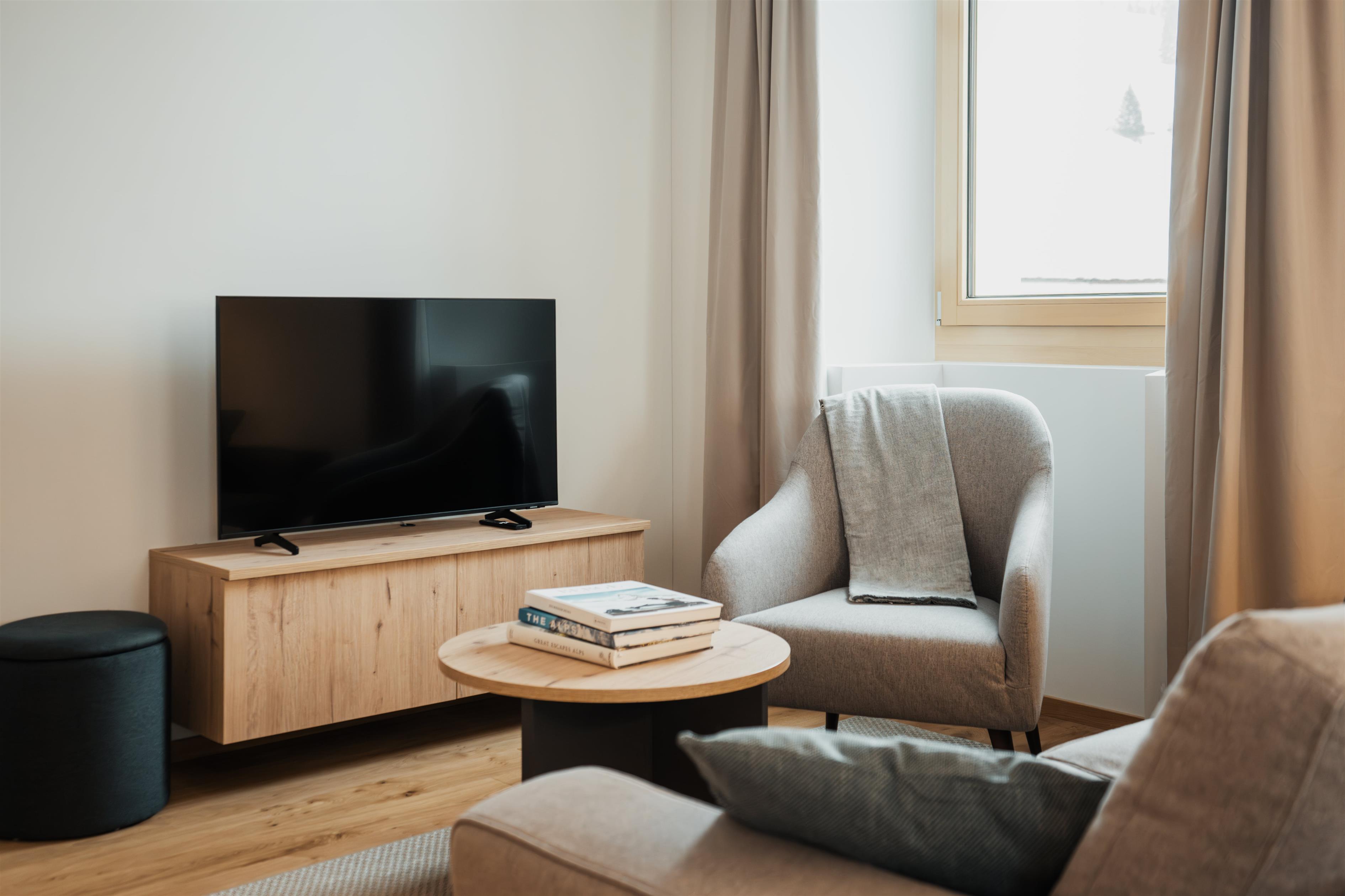 The San Bernardino Alpine Apartments comprise a total of 55 finely furnished flats in three exclusive residences, Castanea, Larix and Tilia, where the concept of alpine living is reinterpreted and celebrated with passion in a beautiful mountain landscape in the green area of Pian Cales. The flats offer numerous services, a unique concierge service, access to a wellness and spa area, ski and mountain bike storage.