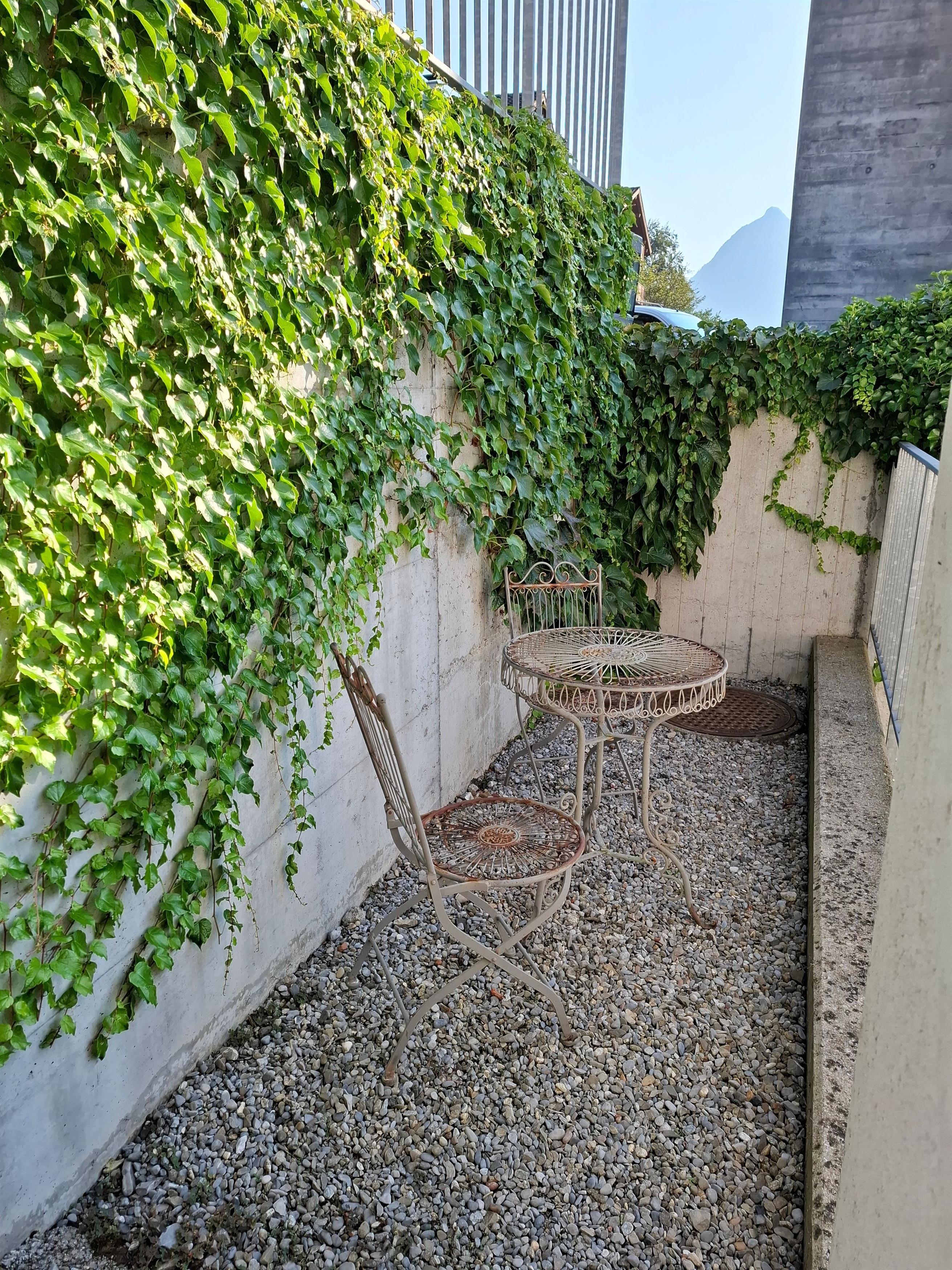 - Garden seating area with garden furniture (2 deckchairs, 4 chairs
