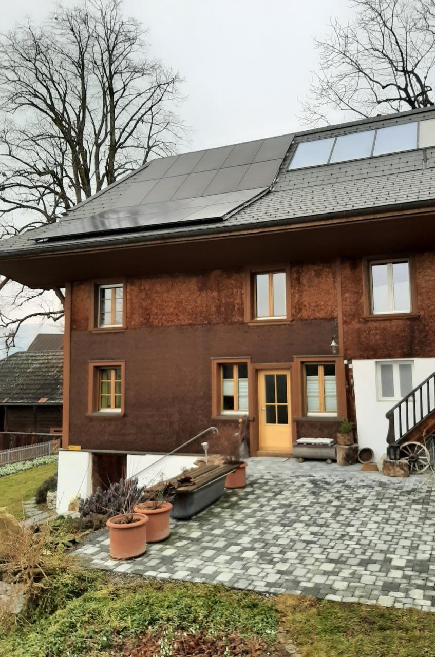 Outside, a large sun terrace with a direct view of the impressive foothills of the Alps, the "Hohgant", awaits you. The surrounding meadows and the area around the house invite you to linger and relax in the idyllic landscape. Here you can fully enjoy the peace and quiet.