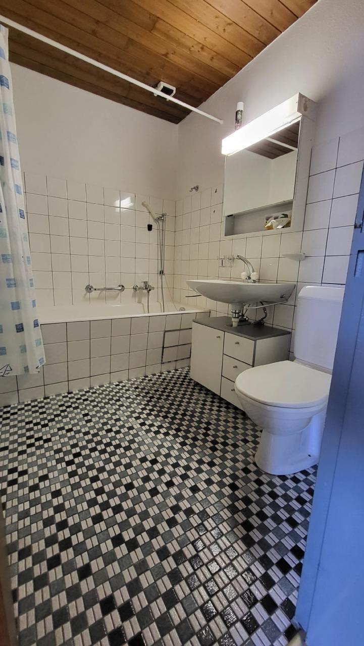 In the large living area you will find the open kitchen with a cosy dining area, the living room with TV and access to the balcony. Here you can enjoy a unique view over the whole valley. The kitchen is excellently equipped for up to 6 people (also fondue dishes and raclette oven available). The bedroom has a comfortable double bed and the children's room is equipped with a bunk bed. The flat has a bathroom with bathtub and WC. In addition, the flat has free internet access via W-LAN as well as internet TV.