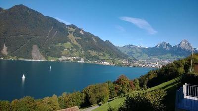 TOP holiday home for sole use in the middle of the lake and mountain world of beautiful Central Switzerland. With several terraces with unobstructed views of Lake Lucerne and the mountains; easily accessible; quiet location; excellent starting point for a variety of tourist excursions; modern and generously equipped; large kitchen/living room; 3 double bedrooms on the upper floor. Parking space for a maximum of 2 cars on a grassy strip in front of the house.