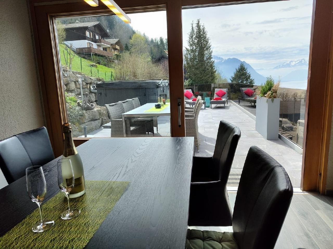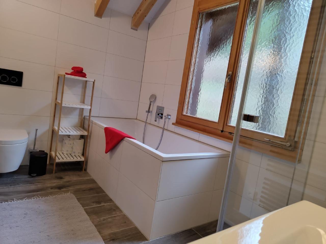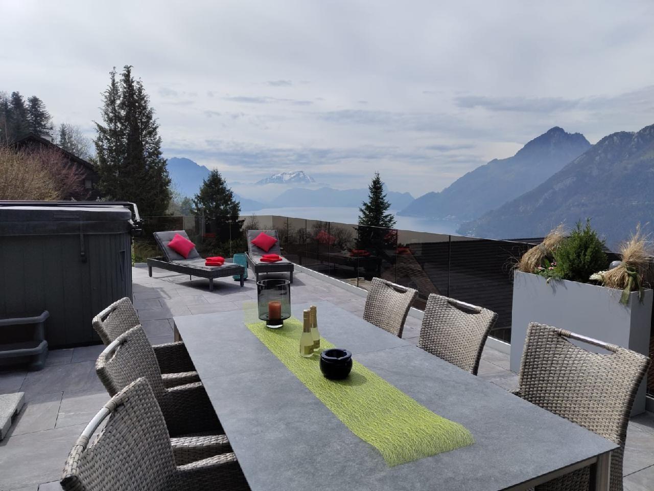 A large jacuzzi/whirlpool with counter-current system is a dream for swimming and bathing. Relax in the warm bath and enjoy the distant view of the lake and the impressive mountains in the panorama (Pilatus, Bürgenstock and the Rigi).