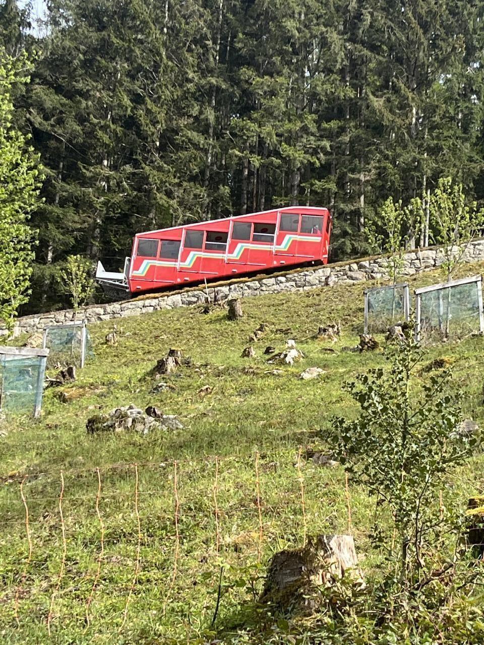 The funicular railway takes you down to the shores of Lake Lucerne from Treib. The Treib-Seelisberg funicular railway is the oldest funicular railway in Switzerland, but is lovingly maintained and cared for. There are other mountain railways/cableways in the surrounding area.