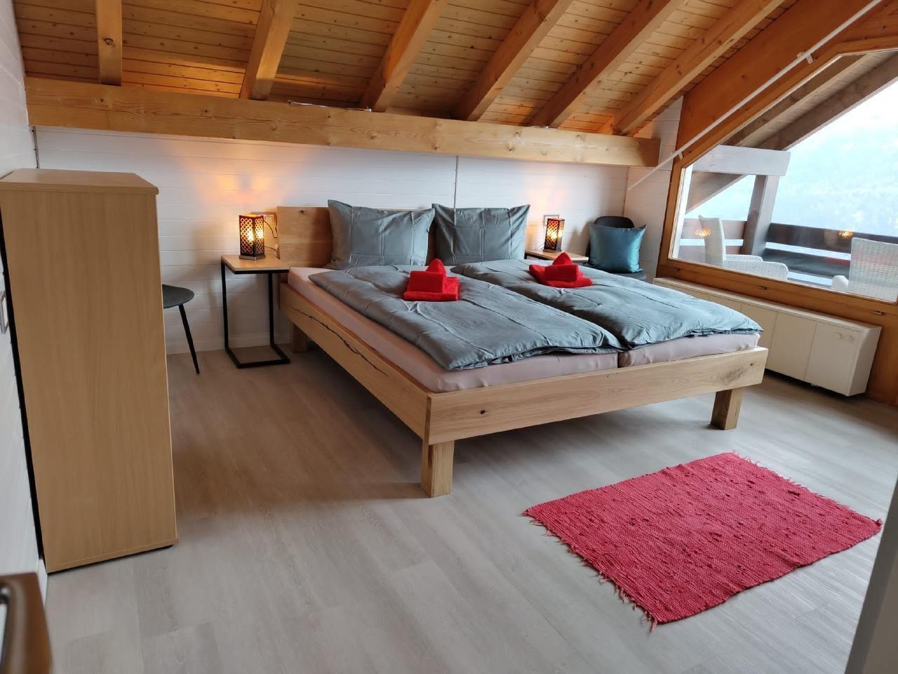Other bedroom furnishings (bedroom 1): New double bed with adjustable mattresses (automatic machines). Large built-in wardrobe. Balcony with marvellous view of Lake Lucerne and the opposite mountain, the Rigi.