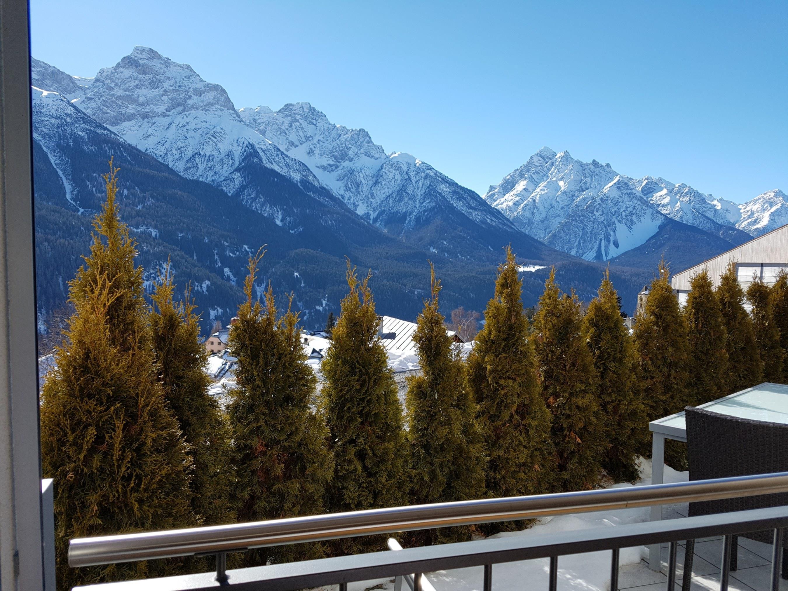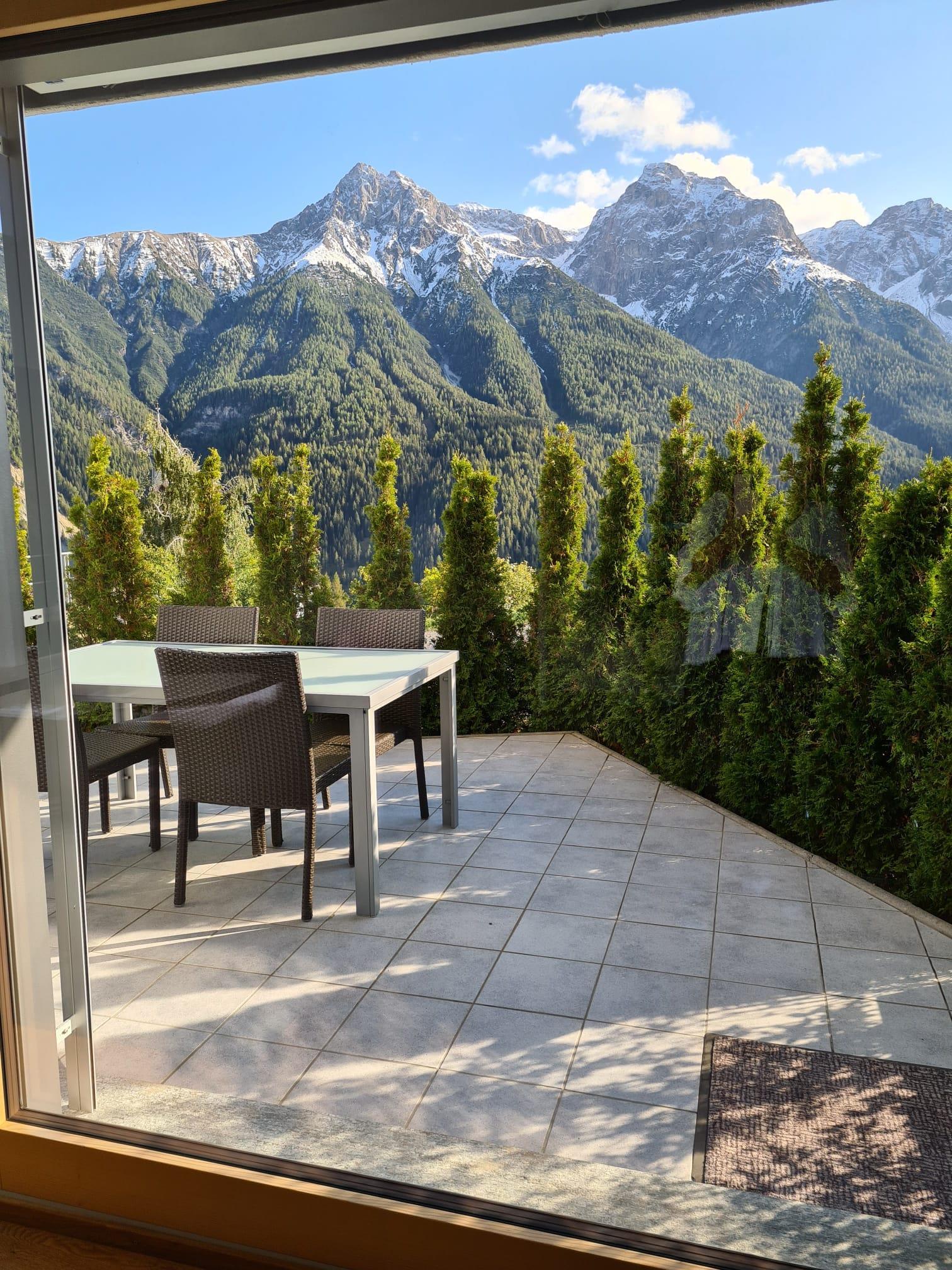The southern terraces and the room-high window and door openings offer a wonderful view of the Lower Engadine mountain world, the fairytale nature and the whole valley.