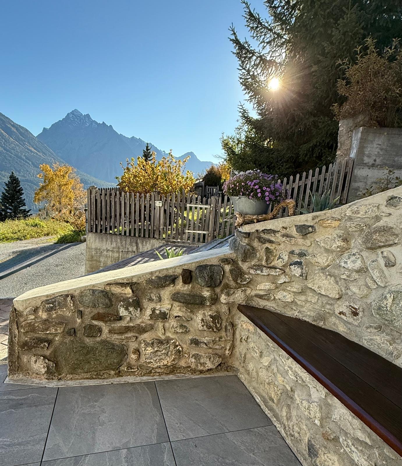 Modern and newly reconstructed 3 ½ room holiday apartment in sunny and quiet location in the basement of an Endiadina family house in Sent for up to 5 persons. Terrace as well as a seating place in the garden with a magnificent panorama view.