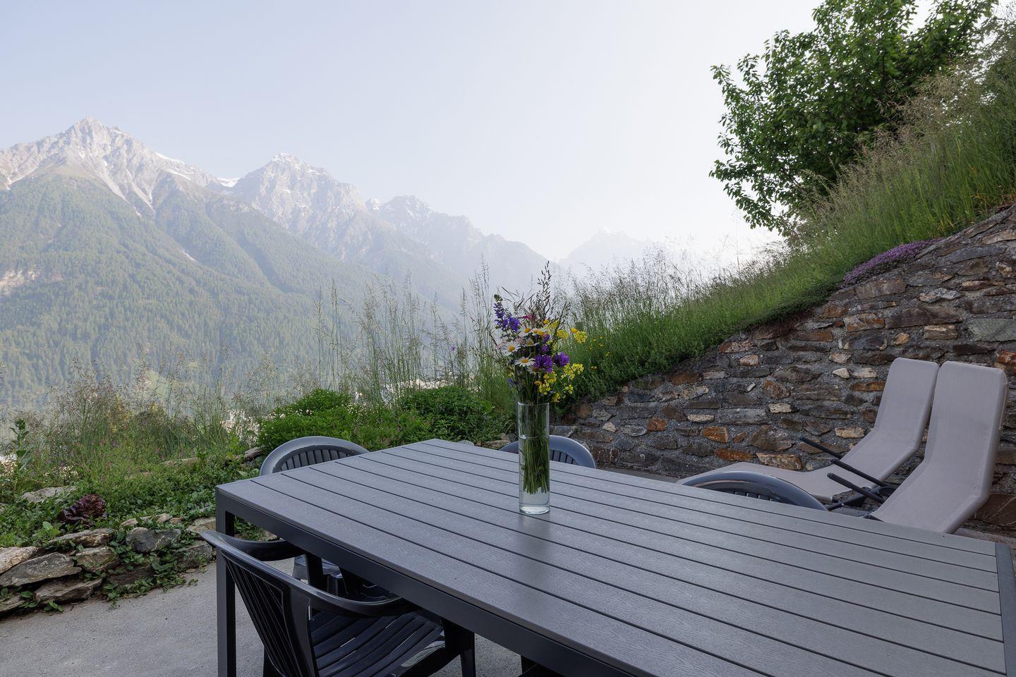 From the spacious garden seating area (approx. 25m2) you can enjoy an unobstructed panoramic view of the Lower Engadine mountains. The village center with the stores and the free ski bus to the ski area “Scuol Motta Naluns” can be reached in a few minutes on foot. In winter, the 10-kilometer-long dream slope takes you directly into the valley to Sent and ends not far above the vacation apartment.