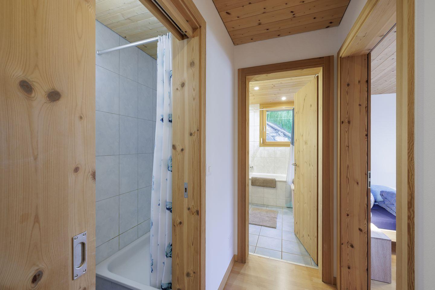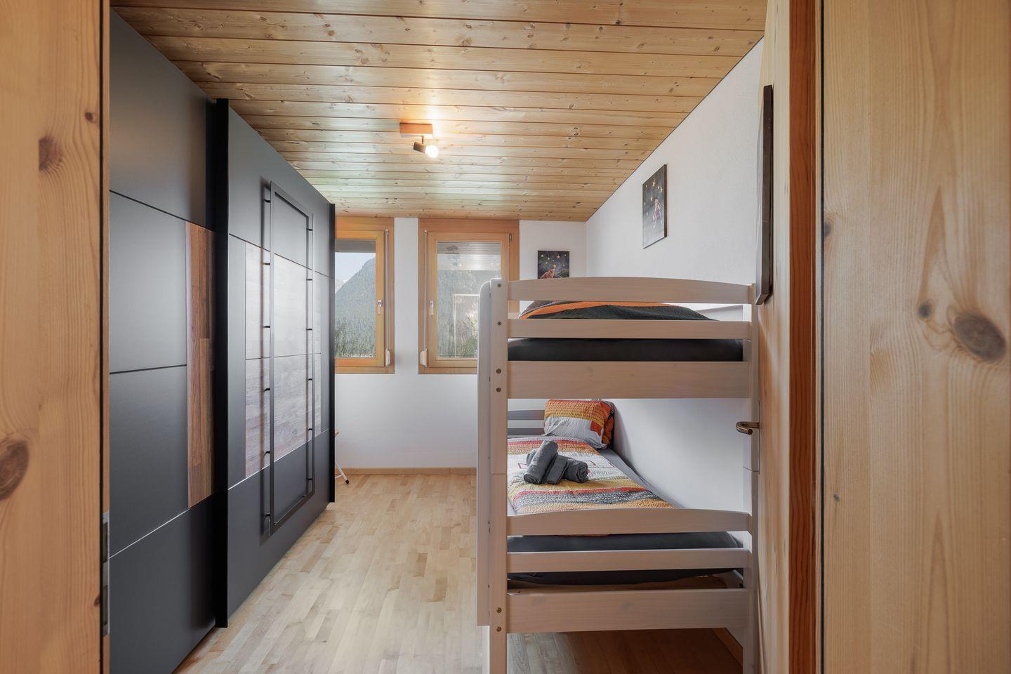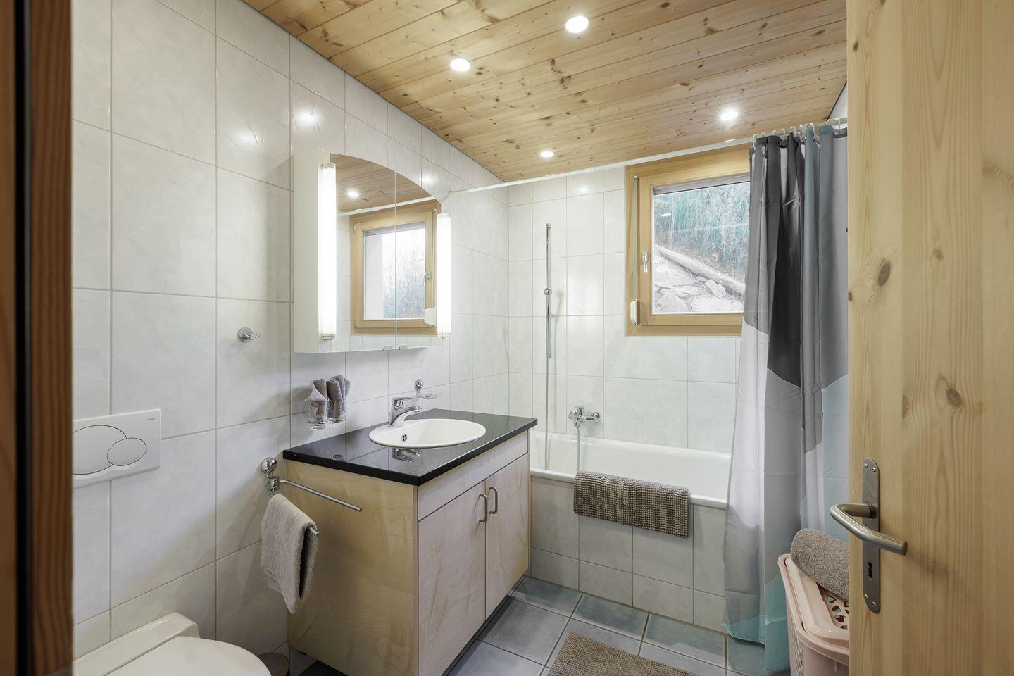The vacation apartment Chasa il Bé has a bright living and dining room with access to the balcony. Well-equipped kitchen with dishwasher, hob, fondue and raclette set, Tassimo coffee machine, bunk bed for two people (ideal for children), double bedroom with two single beds, double bedroom, shower and bathtub, WC, washbasin, flat screen TV, free Wi-Fi and much more.