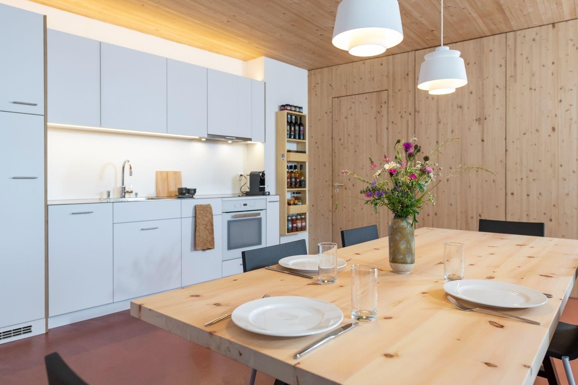 Chasa Laina, Ferienwohnung SULAI im Bergdorf Sent im Engadin.Die Chasa Laina bietet grosszügiges Wohnen mit Alpenblick. Die zwei 3,5-Zimmer Ferienwohnungen SULAI und GLÜNA sind mit hochwertigen Materialen und einer kontrollierten Lüftung ausgestattet.Besuchen Sie unseren Rückzugsort und tauchen Sie ein ins Abenteuer.Wiedereröffnung im Juni 2022 nach Renovation.