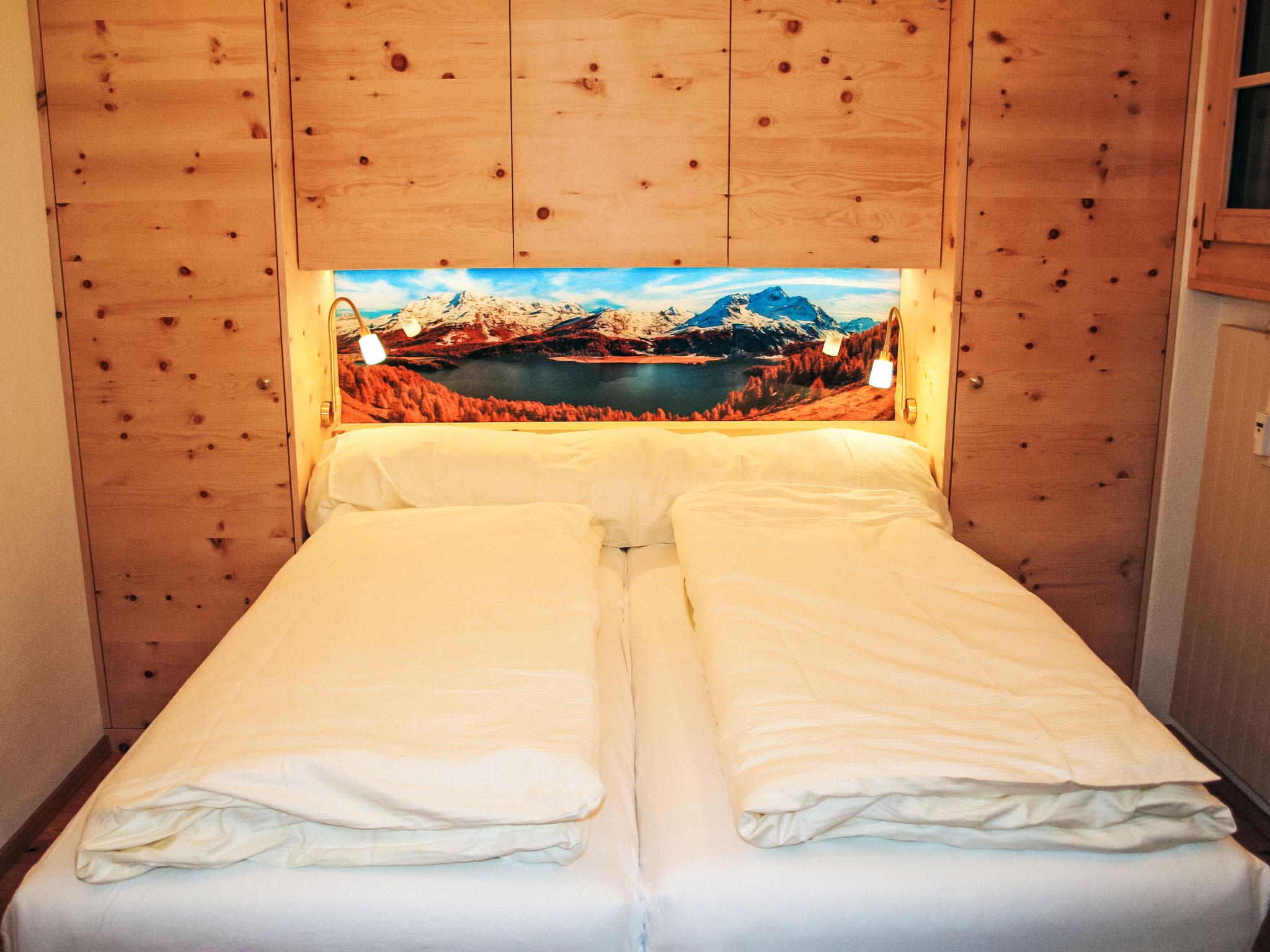 "Chesa Alvetern 5", 1-room apartment 35 m2 on 1st floor. Partly renovated in 2016, comfortable and wooden furniture furnishings: living/sleeping room with 1 double bed (2 x 80 cm, length 200 cm), dining table and TV (flat screen). Exit to the balcony, south facing position. Open kitchen in the entrance (4 hot plates, oven, dishwasher, toaster, kettle, microwave, electric coffee machine, Capsules for coffee machine (Nespresso) extra, raclette grill, fondue Set (cheese)). Bath/WC. Heating. Balcony. Balcony furniture. Partial view of the resort. Facilities: hair dryer. Internet (WiFi, free). Garage space n 5, height 200 cm, width 250 cm. Please note: non-smokers only. Maximum 1 pet/ dog allowed.