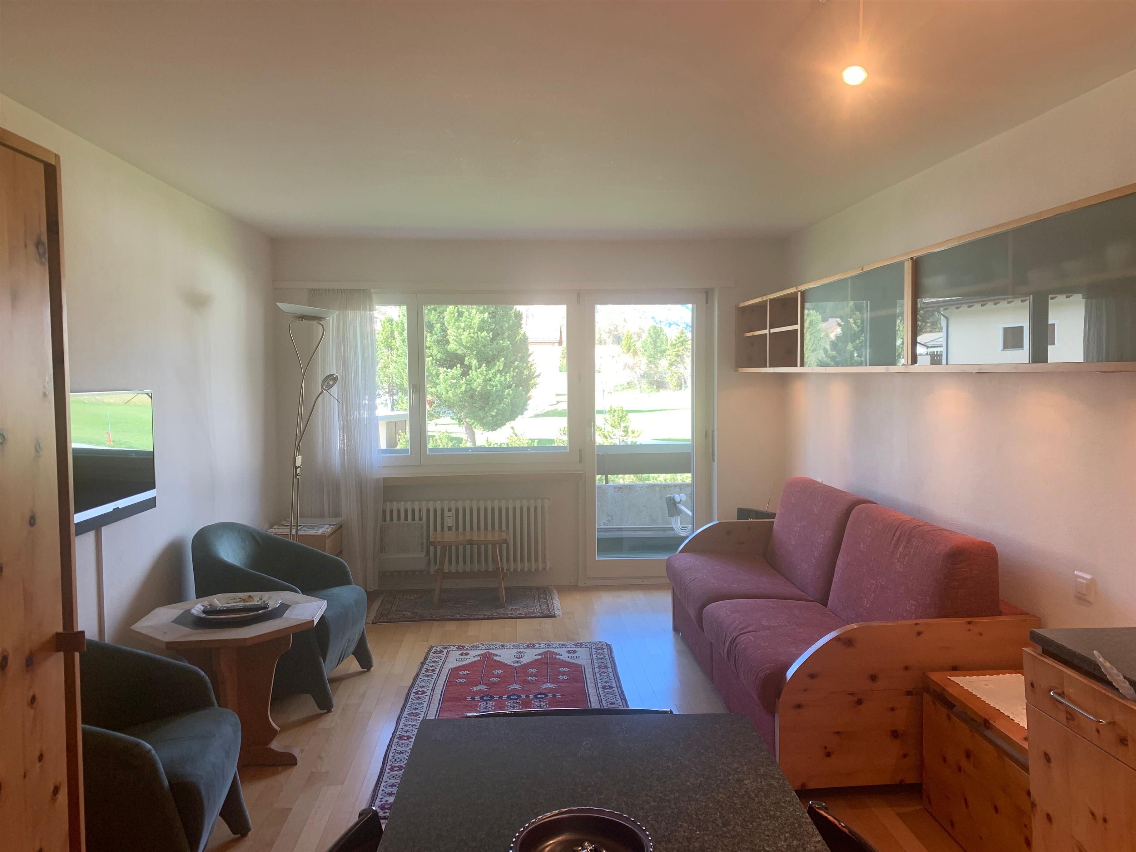 Experience the charm and tranquillity of our sunny, bright holiday flat in the Engadin. The 26 m² 1-room flat offers the ideal retreat for 1-2 people on the 2nd floor, complete with a south-facing balcony from which you can enjoy a magnificent view of the Piz da la Margna and the Furtschellas cable car.
