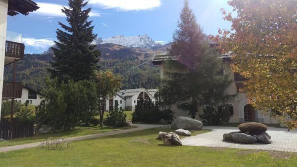 The residential complex was renovated in 2016. The apartment is located on the ground floor and is very spacious with two 1/2 rooms, which is ideal for two persons, 70 m2, seating area/garden with view to the beautiful mountain Corvatsch. Living room with a cosy fireplace in the evening. A separate seating group for relaxed conversations . Separate bedroom with double bed. In the living room is a sofa, which is suitable as an "emergency bed". Well-equipped kitchen with large fridge and freezer compartment, oven and dishwasher are also available. Also available is for our guest a coffee machine with beans. Large bathroom with toilet as well as a bathtub with walking-in shower. Garage space in the underground car park. Washing machine, tumble dryer and sauna in the basement open to all residents and guests. Bus stop and shop approx. 150 m, cross-country trails and footpaths next to the house and within walking distance. 10 minutes to the Furtschellas/Corvatsch. In winter a free bus is available in the village and to the mountain railway.