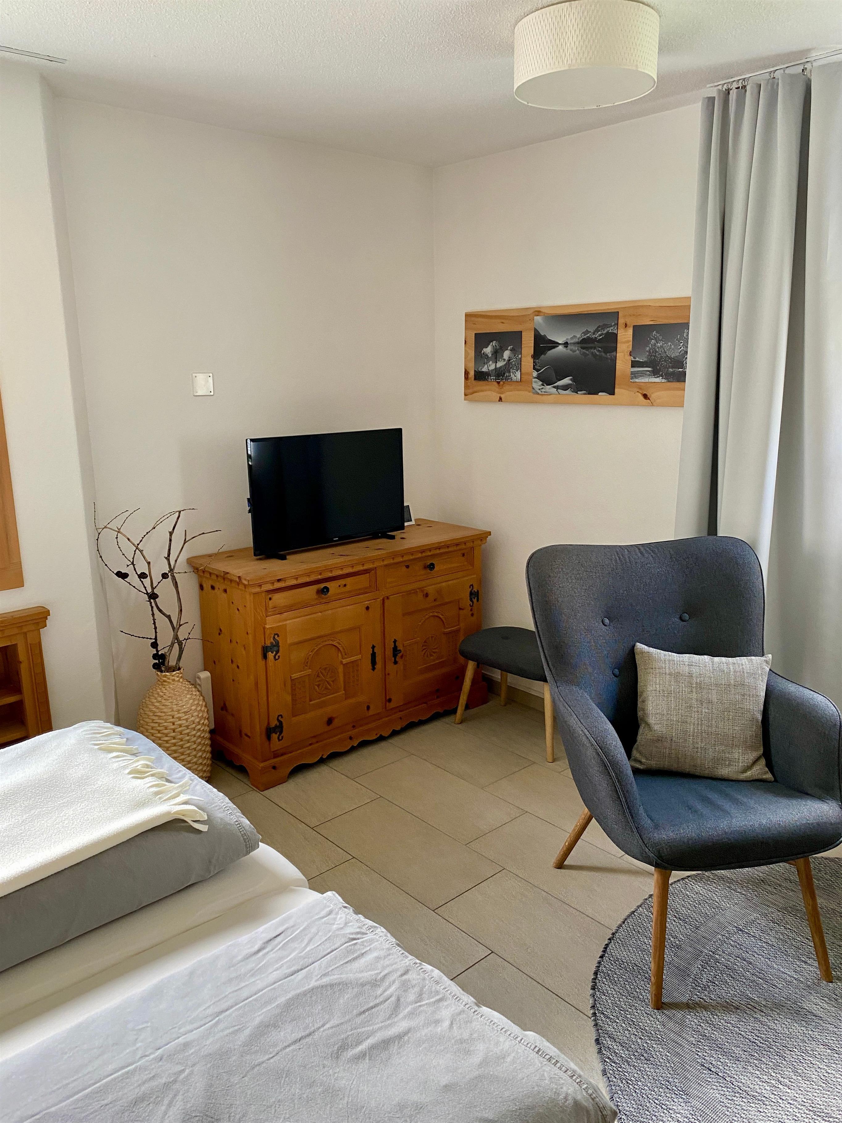 The living/sleeping area was freshly renovated in May 2025 with a new 180/200 cm bed and new armchairs.