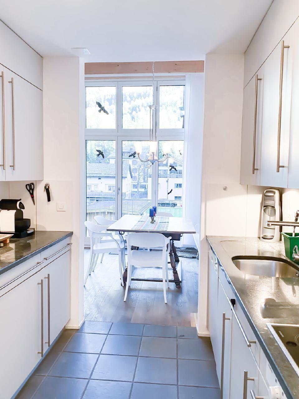 Immerse yourself in the ambience of our exquisite maisonette attic flat in picturesque Sils Maria, just 10 km from St. Moritz. With its open, spacious living area, which offers a direct view of the impressive Furtschellas and Corvatsch ski area through large windows, this holiday accommodation sets new standards in terms of luxury and cosiness. The inviting fireplace area with cosy armchairs offers the perfect retreat for relaxing hours after an active day in the mountains.