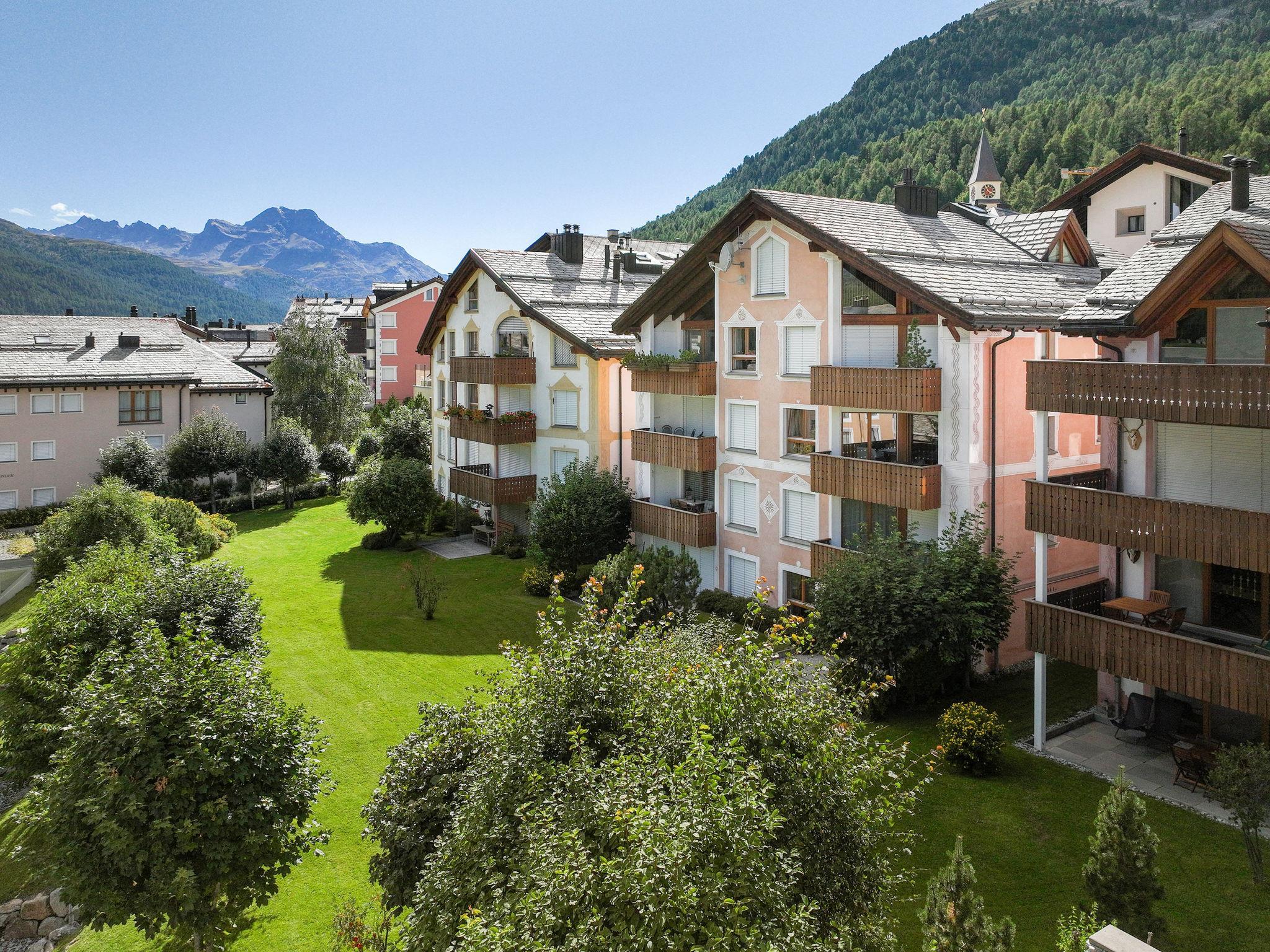 Silvaplana 6 km from St. Moritz: Beautiful apartment house "Chesa Dal Luf", 4 storeys. In the centre of Silvaplana, in a sunny position in the residential district, 500 m from the lake, in a cul-de-sac. In the house: table tennis, playroom, lift, storage room for bicycles, storage room for skis, central heating system, washing machine, tumble dryer, drying room. Communal covered parking. Grocery 20 m, restaurant 50 m, bakery 10 m, café, bus stop "Silvaplana Kreisel Mitte" 180 m, indoor swimming pool 6 km, lake Silvaplaner See 500 m. Surf school 1 km, tennis 1 km, sports centre 1 km, walking paths from the house 500 m, cycle lane 500 m, cable car 2 km, ski lift 2 km, ski rental 50 m, ski bus stop 180 m, ski school 1.4 km, children's ski school 1.4 km, cross country ski track 500 m, ice rink 1 km, children's playground 200 m. Nearby attractions: Nietzsche Haus in Sils Maria 5 km, Segantini Museum in St. Moritz 6 km. Well-known ski regions can easily be reached: Corvatsch - Furtschellas 2 km, Corviglia 6 km, Diavolezza - Lagalb 24 km. Well-known lakes can easily be reached: Silvaplana & Champferer See 500 m, Silser See 5 km, St. Moritz Seee 6 km. Hiking paths: Corvatsch 3 km, Corviglia 6 km, Via Engiadina, Val Fex. Please note: ski bus (free of charge). Free ski bus service to the ski region Corvatsch. Please note: Additional accommodations can be booked.
