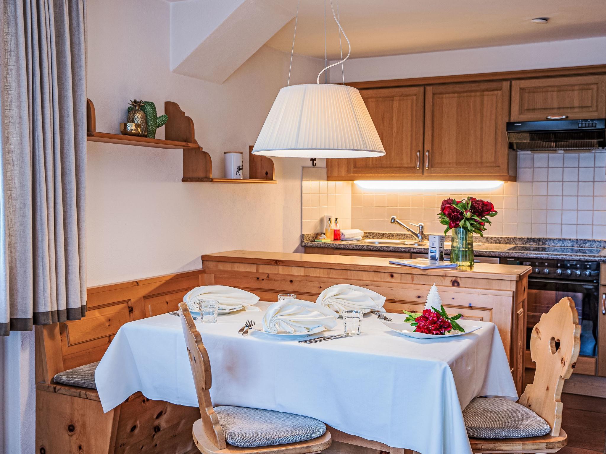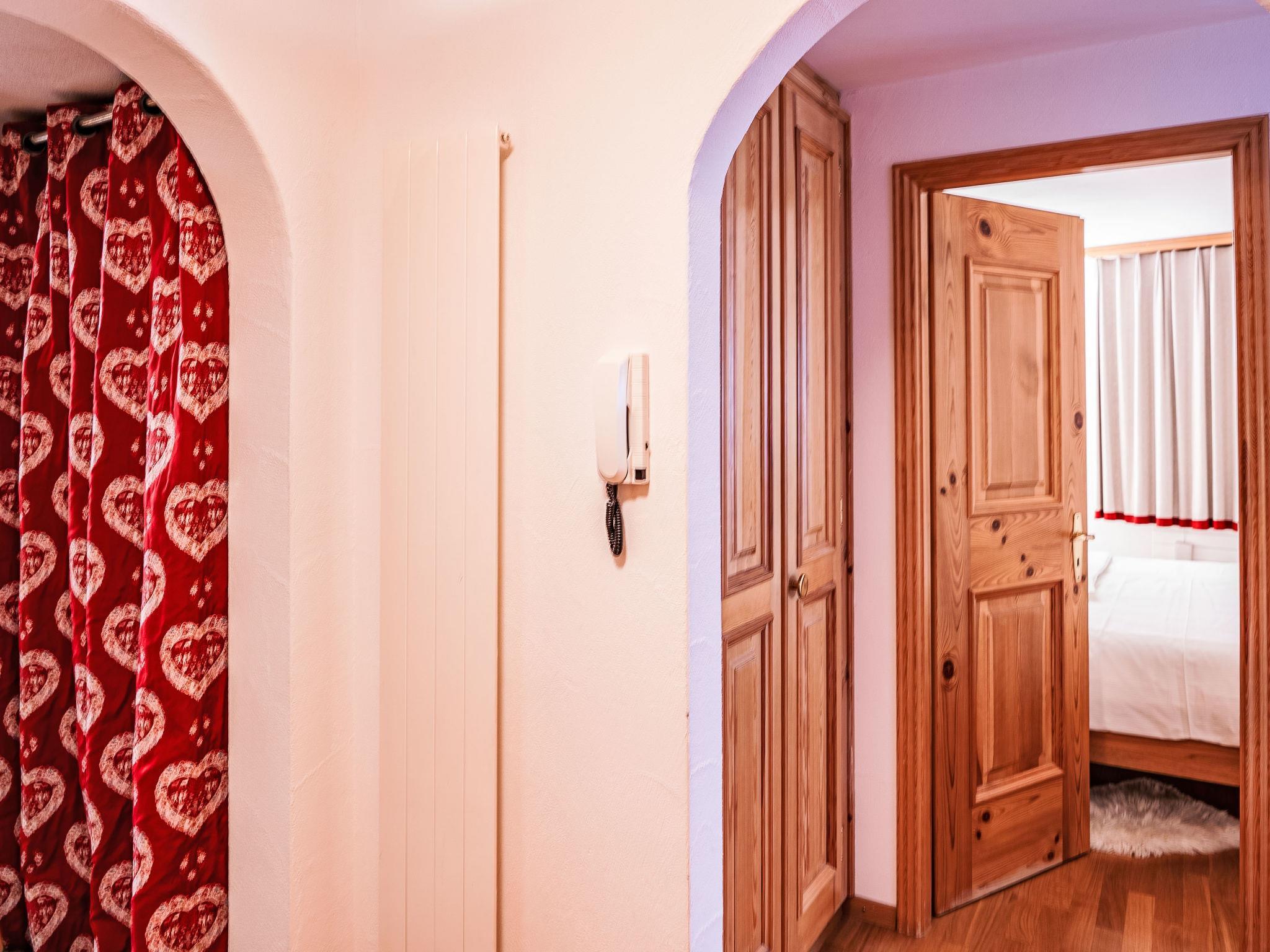 "Chesa Vadret Surlej", 2-room apartment 57 m2, on the ground floor. Partly renovated in 2016, cosy furnishings: open living/dining room with 1 sofabed (160 cm, length 200 cm), TV (flat screen). Exit to the terrace. 1 room with 1 double bed (1 x 170 cm, length 200 cm). Open kitchen (dishwasher, 4 ceramic glass hob hotplates, toaster, kettle, electric coffee machine, Capsules for coffee machine (Nespresso) extra, fondue Set (chinoise)). Shower/bidet/WC. Heating. Small terrace. Terrace furniture. View of the mountains and the resort. Facilities: hair dryer. Internet (WiFi, free). Garage space n 26 on the property, height 205 cm, width 290 cm. Please note: non-smokers only.