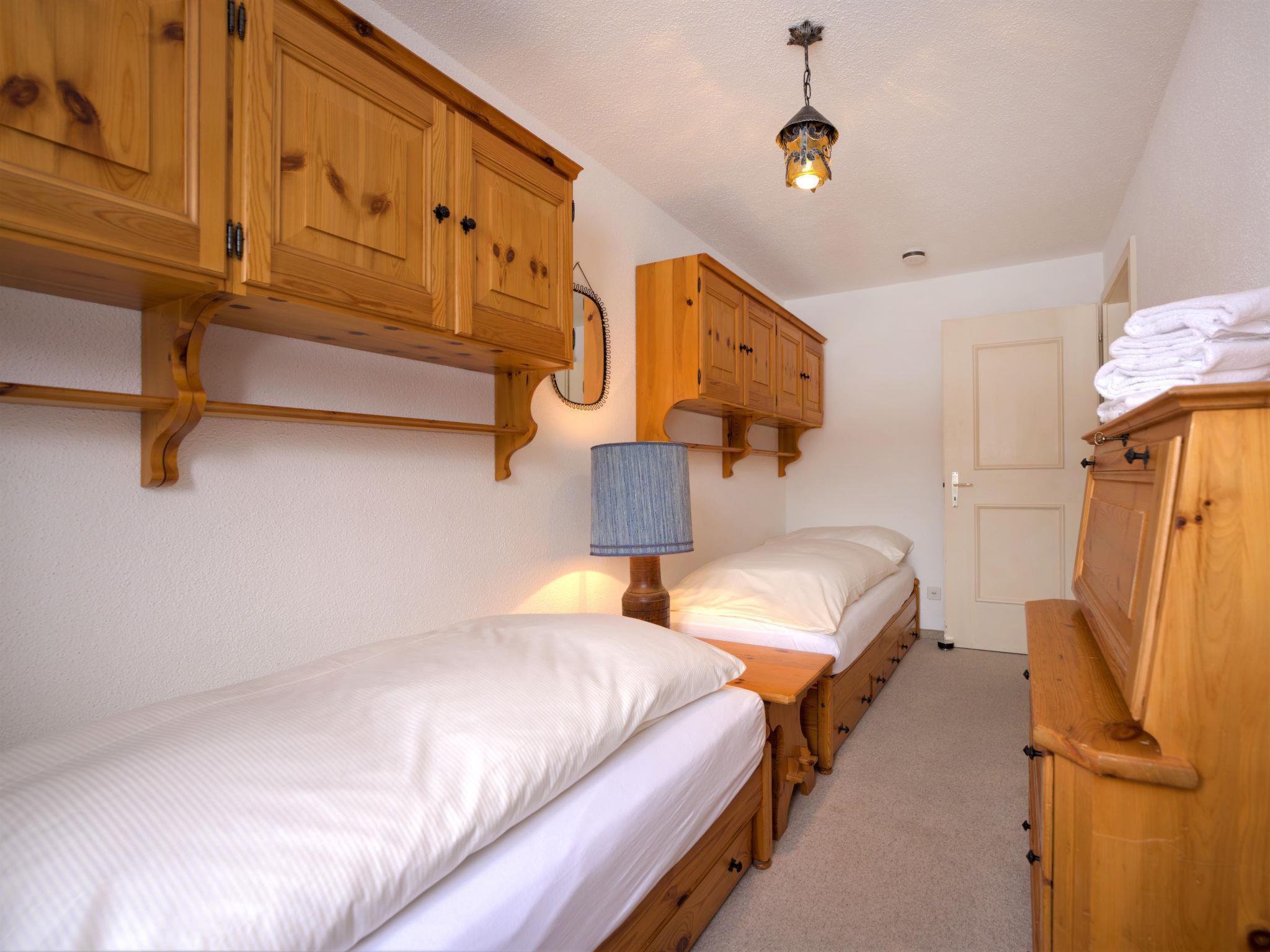 "Chesa Linaria", 3-room apartment 70 m2, on the upper ground floor. Simple furnishings: living room with dining nook and TV (flat screen). Exit to the balcony, south facing position. 1 room with 1 double bed (2 x 90 cm, length 185 cm). 1 small room with 2 beds (90 cm, length 190 cm). Kitchen (oven, dishwasher, toaster, kettle, electric coffee machine, Capsules for coffee machine (Nespresso) extra, raclette grill, fondue Set (chinoise)) with hatch. Bath/WC, shower/bidet/WC. Heating. Small balcony. Terrace furniture. Beautiful view of the mountains. Facilities: iron, hair dryer. Internet (WiFi, free). Garage space n 9 (small!), height 205 cm, width 190 cm. Maximum 1 pet/ dog allowed. 756.8668.2733.01
