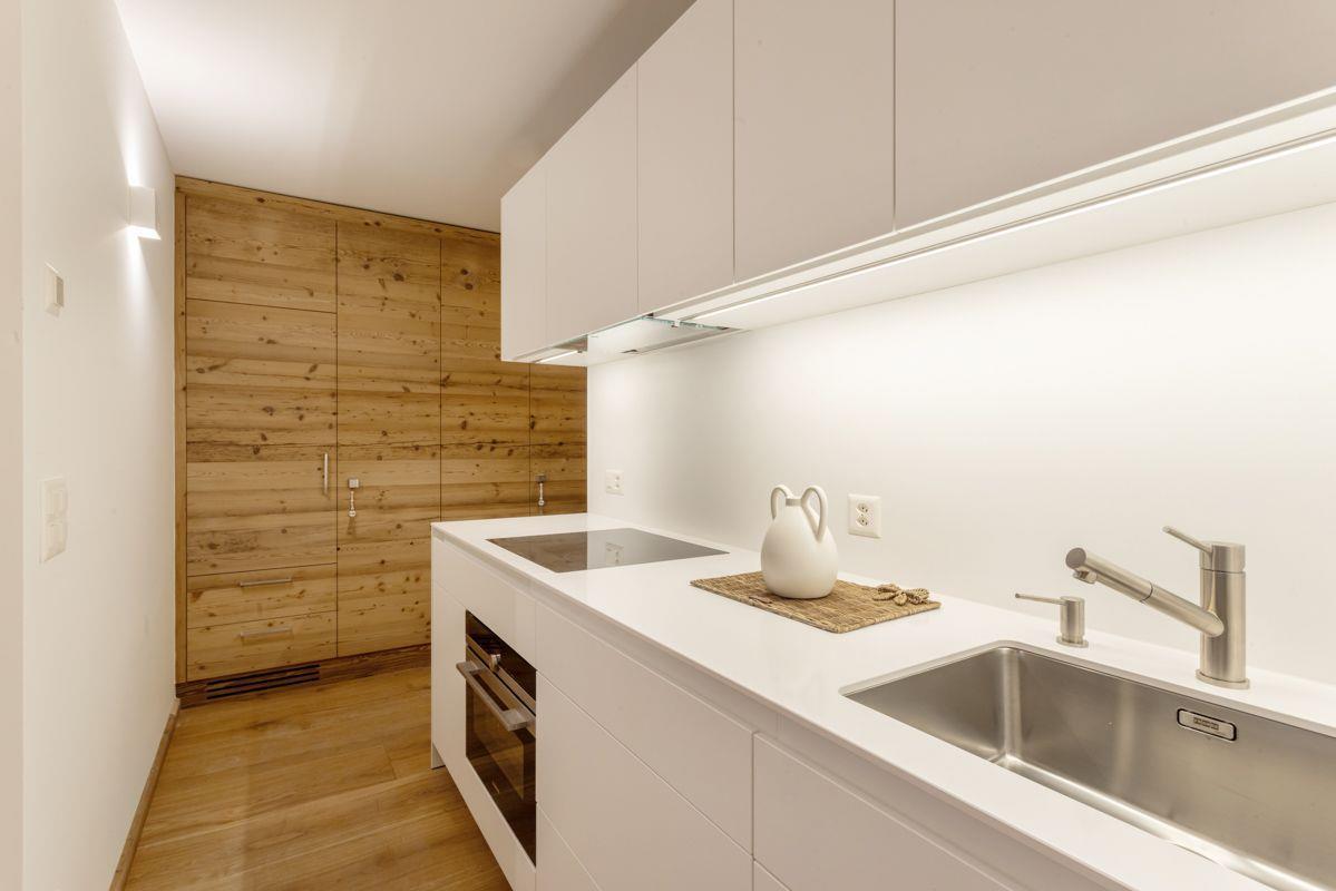 Das Innere der Wohnung beeindruckt mit Eichenholzparkett, einer Bulthaup-Küche und Türen sowie Einbauschränken aus exklusivem Altholz. Ein modernes Wohngefühl durchströmt jeden Raum. Das Schlafzimmer, lichtdurchflutet und stilvoll eingerichtet, bietet Zugang zum Balkon, während die Nasszelle mit einer Regendusche für einen Hauch von Luxus sorgt. Bettsofa im Wohnzimmer für eine Person (Kind oder Jugendlich). WLAN-Internet und TV stehen zur Verfügung.