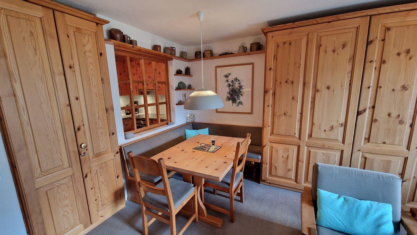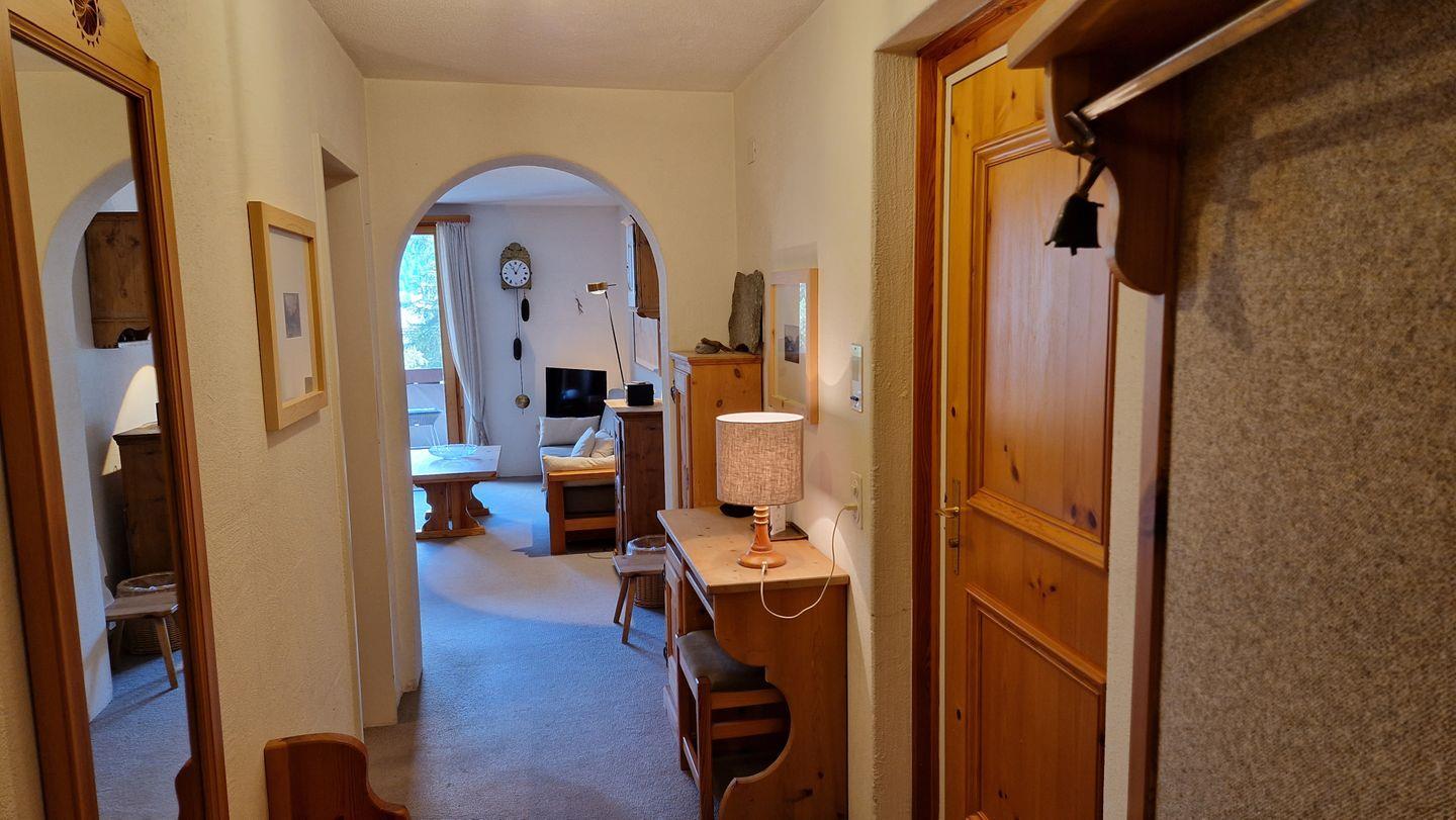 2 1/2-Zimmerwohnung, gemütliche Arven-Wohnung, gedeckter Balkon mit Bergsicht