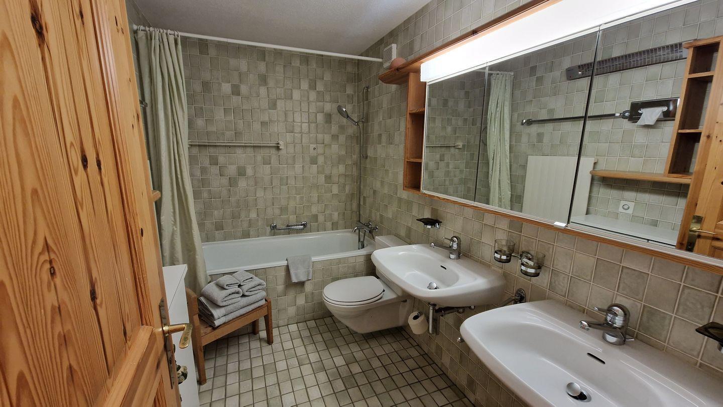 2 1/2-Zimmerwohnung im Haus Leivra, im 2. Stock, 75 m2. Die Wohnung ist mit Arvenmöbeln ausgestattet und verfügt über ein Wohn-/Esszimmer mit zwei Schrankbetten (90x200) und Fernseher, ein Schlafzimmer mit Doppelbett, ein Bad/WC und eine Küche mit Backofen, Geschirrspüler, Nesspresso-Kapselmaschine und Toaster. Der gedeckte Balkon ist nach Süden ausgerichtet und bietet eine schöne Aussicht in die Berge. Nichtraucherwohnung.