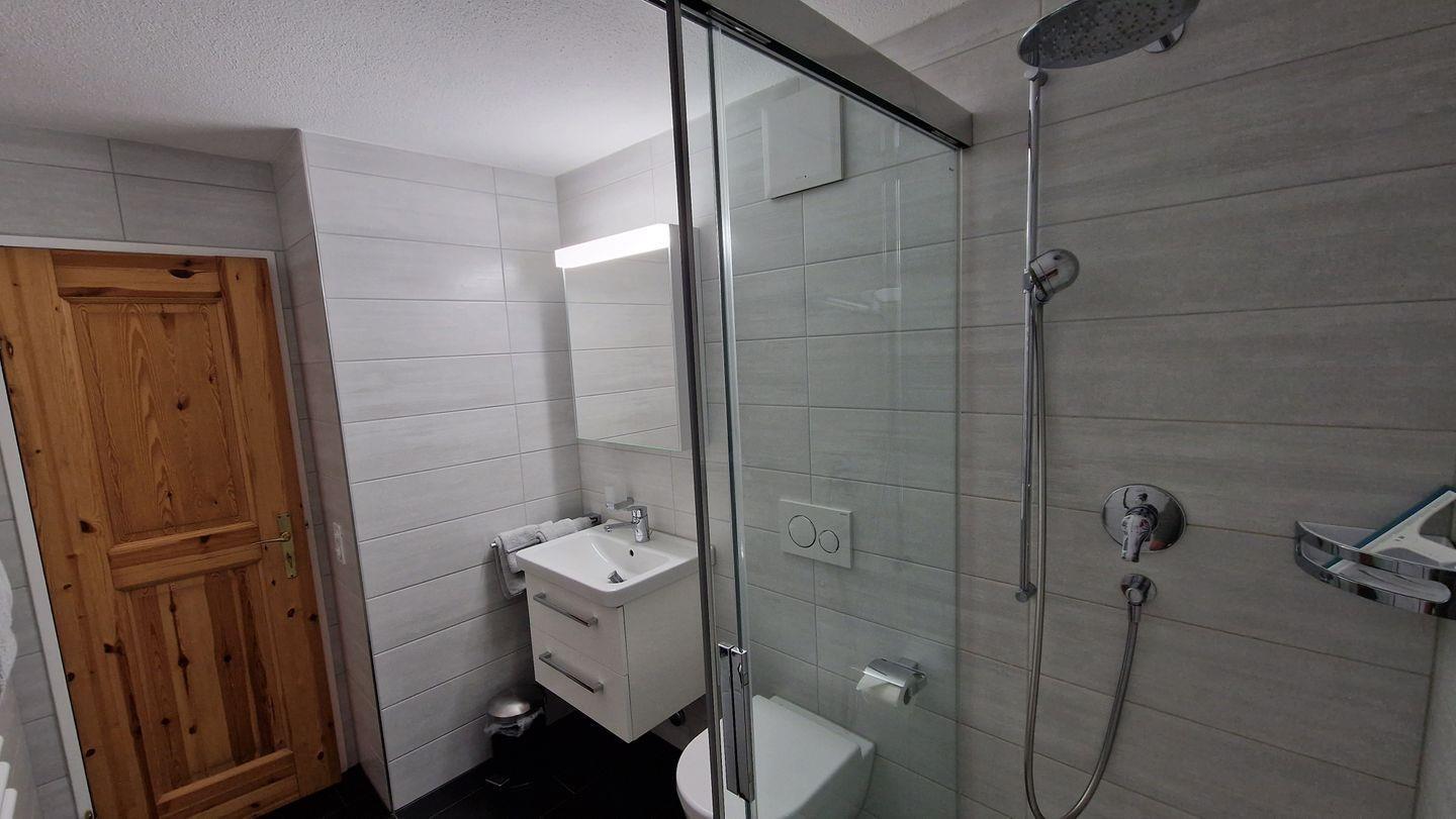 2 1/2-Zimmerwohnung im Haus la Vuolp, 2. Stock, 74 m2. Die Wohnung verfügt über ein Wohn-/Esszimmer mit zwei Schrankbetten (90x200), Fernseher und einer Leseecke, ein Schlafzimmer mit Doppelbett, ein Bad mit Regendusche und WC sowie eine Küche mit Durchreiche, Backofen, Geschirrspüler, Nesspresso-Kapselmaschine und Wasserkocher. Der gedeckte und geschützte Balkon bietet einen Ausblick in die Bergwelt.