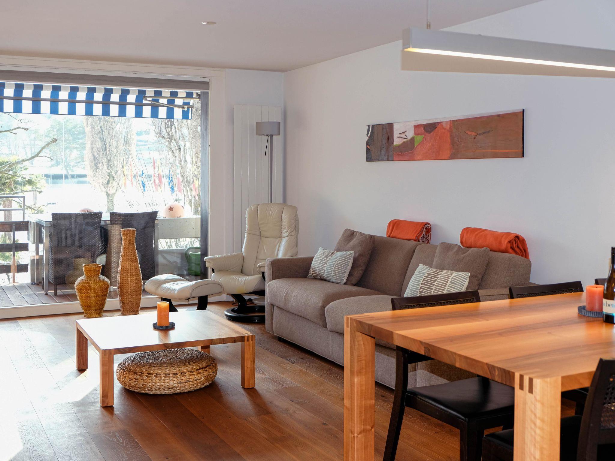 85 m2. More information by the provider: Modern furnished 3-room flat in the heart of the most beautiful bay in Europe. The bijou enchants with its harmonious ambience and breathtaking view of Lake Thun and the surrounding mountain landscape. Bedroom with double bed and shower, bedroom with bunk bed, kitchen-living room, WC and balcony are all on the 1st floor. The balcony and the nearby outdoor swimming pool (during the summer) invite you to sunbathe.
