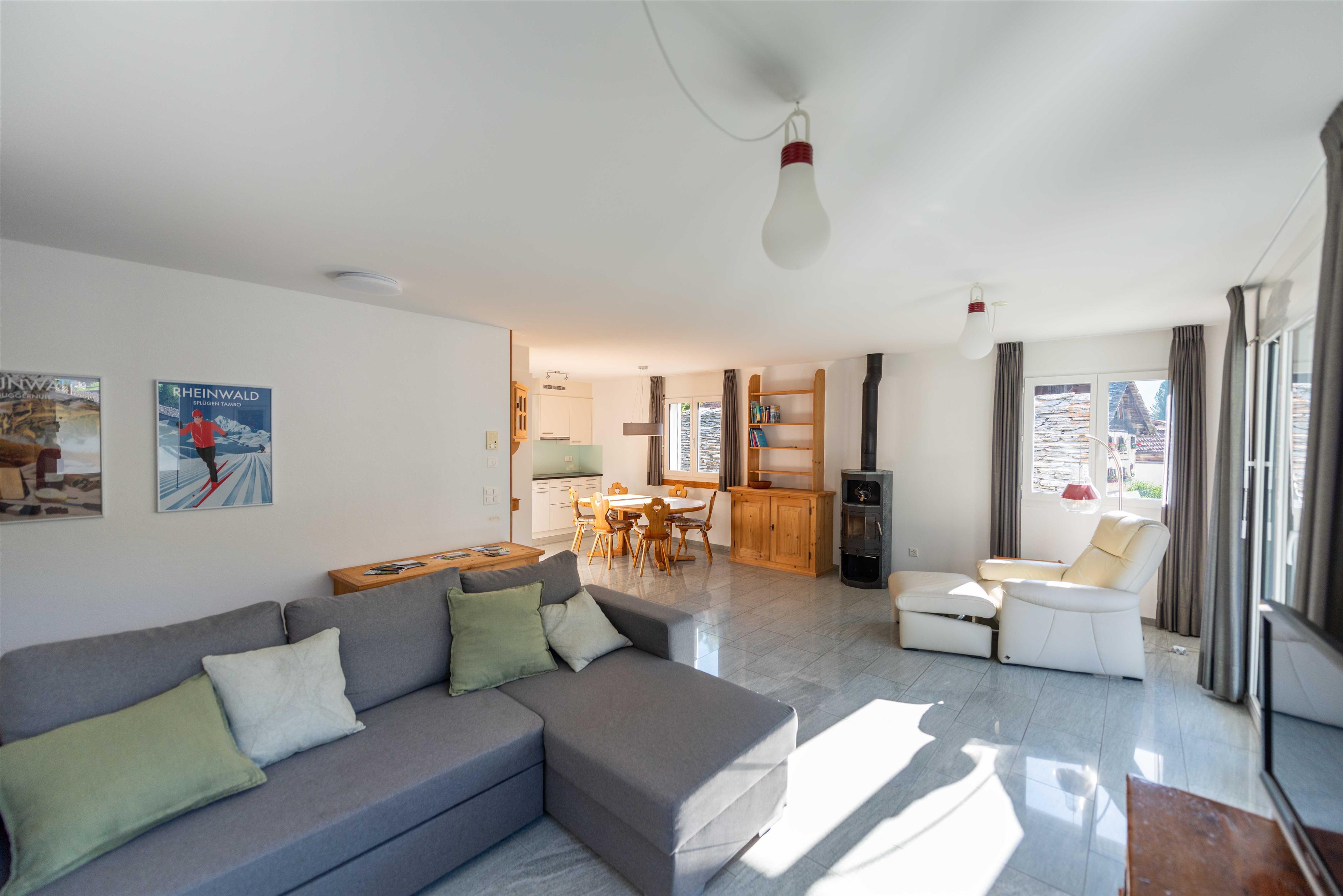 Detached house in a central location with car park. The house is a two-minute walk from the post bus stop and opposite the butcher's shop. The alpine dairy, bakery and grocery store are also in the immediate vicinity. The historic village centre is also very close by.
