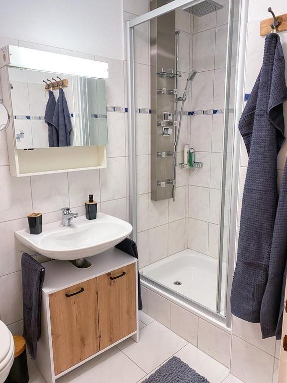 The apartment is located on the 3rd floor and is easily accessible by elevator. It has about 35 m² with 1.5 rooms. The kitchen is very well equipped and offers pretty much everything you need to prepare a delicious meal. To the apartment belongs a free parking space directly at the house.