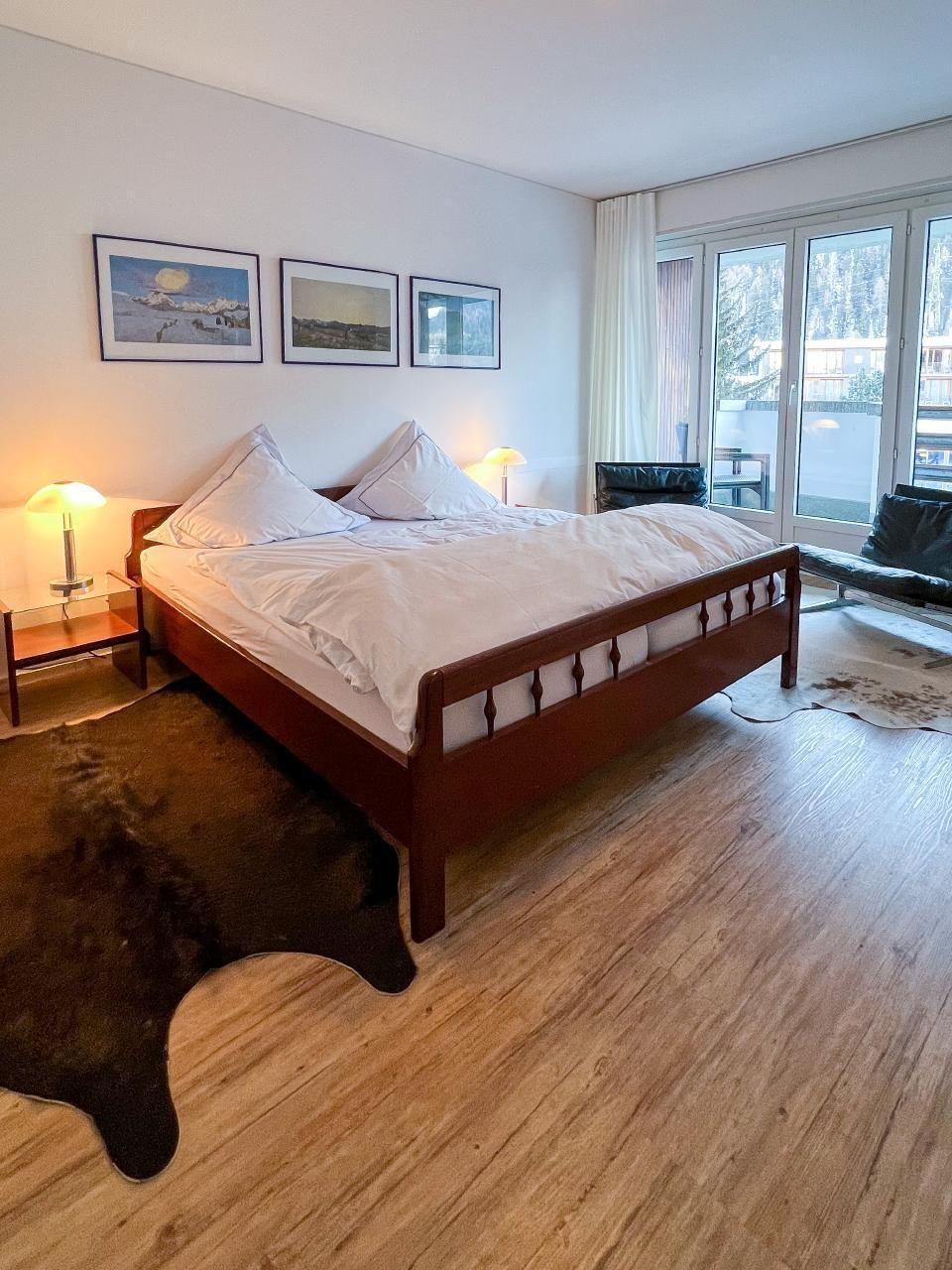 Living room with leather sofa bed (1.60m x 2m), dining table, cable TV, radio, DVD player, CD/MC player and cassette recorder, telephone (chargeable) free internet access LAN/WLAN, DSL 6000, bedroom with double bed (1.80m x 2m), TV, beautiful white tiled bathroom with bathtub, rain shower and bidet. Coin-operated washing machines and dryers are available in the house. Bicycle or ski room. The apartment is quiet but still very central in Sankt Moritz Bad. Bus connection, restaurants, post office and a small park with mini golf course are in the immediate vicinity. The spa, doctors, pharmacies and shopping facilities, banks and the valley station of the cable car Sankt-Moritz Bad, Signal - Corviglia are within walking distance. The Sankt Moritz lake and hiking trails are about 300 m away. The apartment is very comfortable for two people. For a maximum of four people, the leather couch in the living room can be folded out to a sofa bed (lying surface 1.40m x 2 m). Free underground parking space (no double parking) in the house or outside parking space on request. Pets by arrangement.