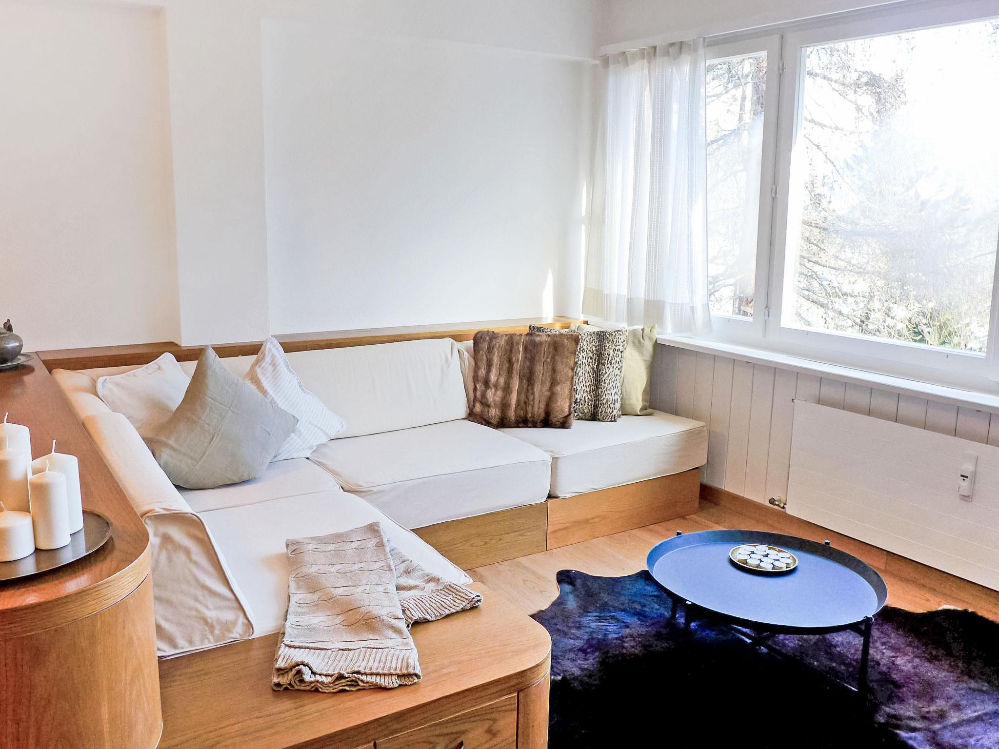 St. Moritz: Comfortable apartment house "Chesa Cripels", built in 1970, renovated in 2010, surrounded by trees. Above St. Moritz-Dorf 450 m from the centre of St. Moritz Dorf, in a quiet, sunny, elevated position on a slope, traffic calmed area, 250 m from the edge of the forest, 2 km from the lake, in a cul-de-sac. For shared use: garden (fenced). In the complex: central heating system, washing machine, tumble dryer (for shared use, extra). Steep motor access. In Winter: please take snow chains, 4x4 car recommended in winter. Steep footpath (30 steps) to the house. Single garage at the house. Shop 700 m, grocery 800 m, supermarket 1.9 km, restaurant 800 m, bar 800 m, bakery 1 km, café 1 km, pedestrian zone 800 m, bicycle rental 2.4 km, bus stop "St. Moritz, Kulm" 700 m, railway station 2 km, indoor swimming pool 2.8 km, thermal baths "Heilbadzentrum St. Moritz" 2.9 km, lake St. Moritzer See 2 km. Golf course (18 hole) 6.4 km, surf school 7.4 km, tennis 3.1 km, indoor tennis centre 3.1 km, minigolf 2.8 km, riding stable 4.4 km, walking paths from the house 250 m, cycle lane 2.8 km, cable car 3 km, mountain railway 350 m, ski lift 350 m, slopes 1 km, ski rental 400 m, ski school 500 m, sled run 5.5 km, cross country ski track 2.8 km, ice rink 2.4 km, children's playground 1.2 km. Nearby attractions: Segantini Museum 1.7 km, Engadiner Museum 1.5 km, Mili Weber-Haus 4.5 km, Olympia Bob Run mit Museum 1.2 km, Nietzsche Museum in Sils-Maria 11.6 km. Well-known ski regions can easily be reached: Corviglia Piz Nair 700 m, Corvatsch - Furtschellas 8.6 km, Diavolezza - Lagalb 19.5 km. Well-known lakes can easily be reached: St. Moritzer See 2 km, Silvaplaner See 7.4 km, Silser See 11.6 km. Hiking paths: Stazerwald & Stazersee, Corviglia Piz Nair, Muottas Muragl. Please note: car recommended, no lift. Loading and unloading of baggage is possible at the holiday house. The keys‘ handover takes place by the agency Interhome in St. Moritz Bad. Additional accommodations can be booked. approx. 500 m path of steps into the village centre.