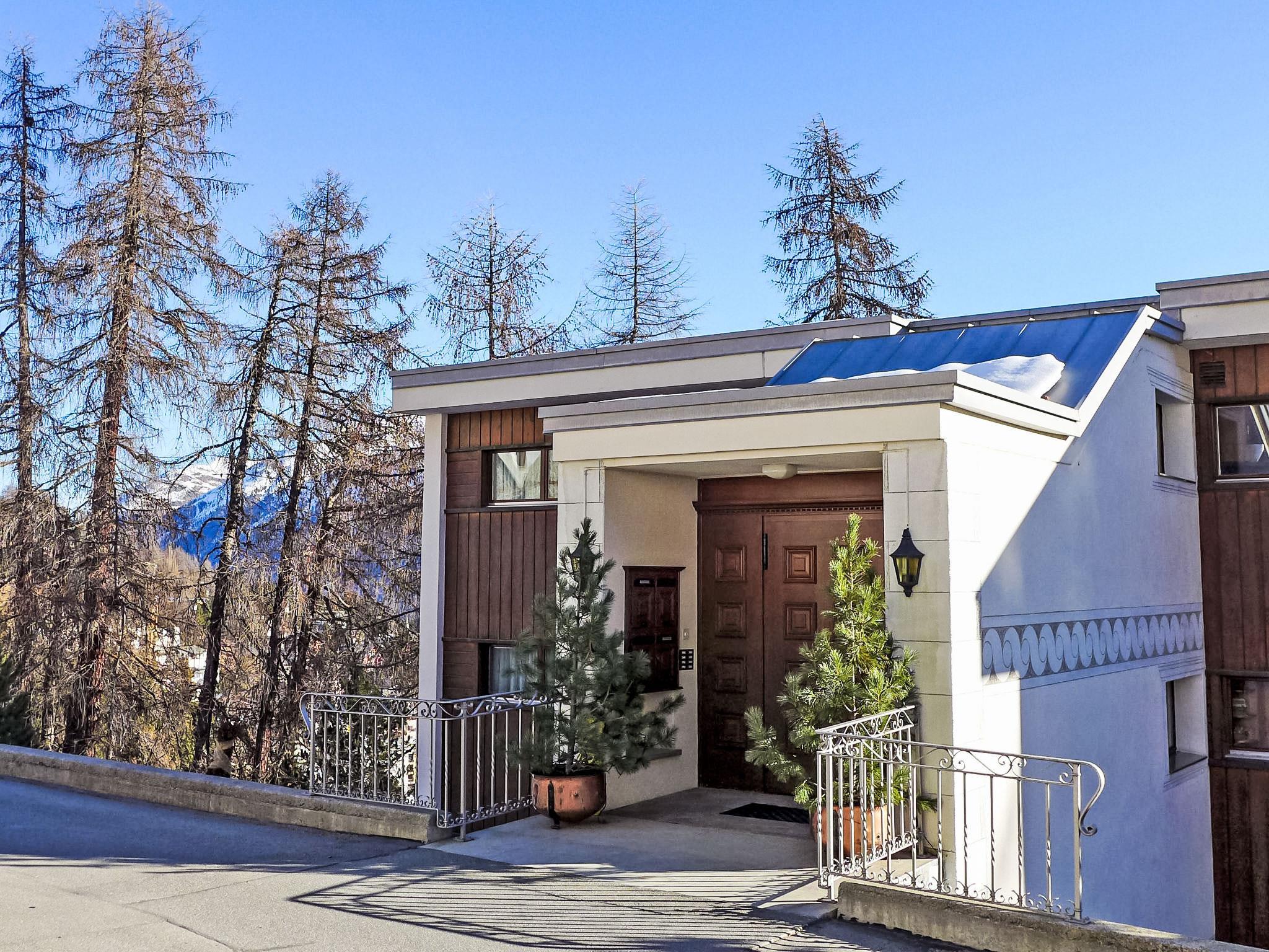 St. Moritz: Comfortable apartment house "Chesa Cripels", built in 1970, renovated in 2010, surrounded by trees. Above St. Moritz-Dorf 450 m from the centre of St. Moritz Dorf, in a quiet, sunny, elevated position on a slope, traffic calmed area, 250 m from the edge of the forest, 2 km from the lake, in a cul-de-sac. For shared use: garden (fenced). In the complex: central heating system, washing machine, tumble dryer (for shared use, extra). Steep motor access. In Winter: please take snow chains, 4x4 car recommended in winter. Steep footpath (30 steps) to the house. Single garage at the house. Shop 700 m, grocery 800 m, supermarket 1.9 km, restaurant 800 m, bar 800 m, bakery 1 km, café 1 km, pedestrian zone 800 m, bicycle rental 2.4 km, bus stop "St. Moritz, Kulm" 700 m, railway station 2 km, indoor swimming pool 2.8 km, thermal baths "Heilbadzentrum St. Moritz" 2.9 km, lake St. Moritzer See 2 km. Golf course (18 hole) 6.4 km, surf school 7.4 km, tennis 3.1 km, indoor tennis centre 3.1 km, minigolf 2.8 km, riding stable 4.4 km, walking paths from the house 250 m, cycle lane 2.8 km, cable car 3 km, mountain railway 350 m, ski lift 350 m, slopes 1 km, ski rental 400 m, ski school 500 m, sled run 5.5 km, cross country ski track 2.8 km, ice rink 2.4 km, children's playground 1.2 km. Nearby attractions: Segantini Museum 1.7 km, Engadiner Museum 1.5 km, Mili Weber-Haus 4.5 km, Olympia Bob Run mit Museum 1.2 km, Nietzsche Museum in Sils-Maria 11.6 km. Well-known ski regions can easily be reached: Corviglia Piz Nair 700 m, Corvatsch - Furtschellas 8.6 km, Diavolezza - Lagalb 19.5 km. Well-known lakes can easily be reached: St. Moritzer See 2 km, Silvaplaner See 7.4 km, Silser See 11.6 km. Hiking paths: Stazerwald & Stazersee, Corviglia Piz Nair, Muottas Muragl. Please note: car recommended, no lift. Loading and unloading of baggage is possible at the holiday house. The keys‘ handover takes place by the agency Interhome in St. Moritz Bad. Additional accommodations can be booked. approx. 500 m path of steps into the village centre.