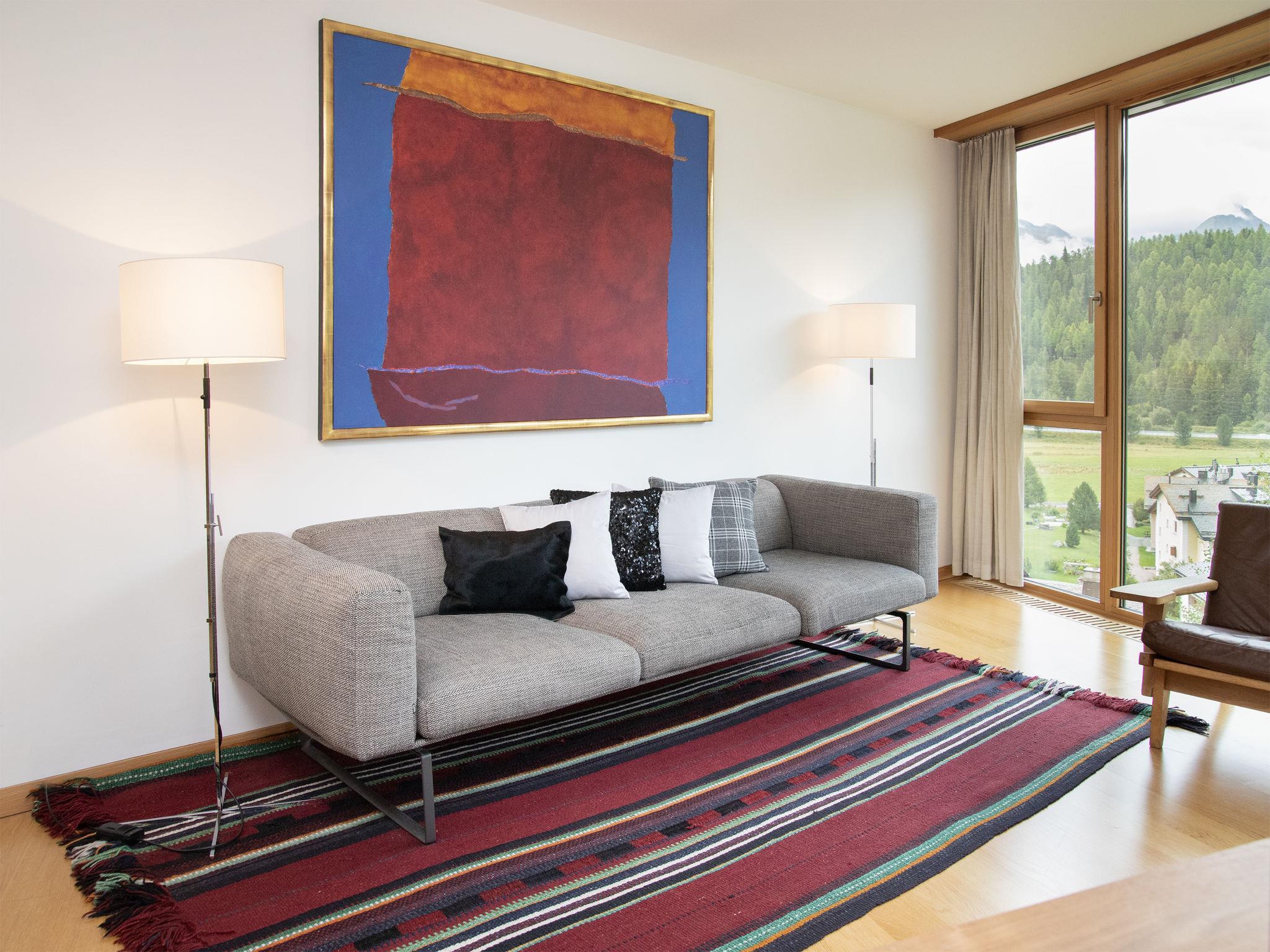 Celerina, 4 km from St. Moritz: Very luxurious residence "Residenz Cresta Kulm", 3 storeys. On the outskirts, in a quiet, sunny position on a slope, 1 km from the skiing area, south-west facing position. In the house: lift, storage room for bicycles, storage room for skis, central heating system, washing machine, tumble dryer. Room cleaning weekly (extra). Communal covered parking space n 26. Shop 500 m, supermarket 800 m, restaurant 200 m, bakery 800 m, café, bicycle rental 550 m, bus stop "Celerina, Cresta Kulm" 20 m, railway station "Celerina" 1 km, indoor swimming pool 5.2 km, lake St. Moritzer See 3.2 km. Golf course (18 hole) 3.8 km, surf school 9 km, tennis 800 m, indoor tennis centre 5.5 km, minigolf 5 km, riding stable 5.7 km, walking paths from the house 300 m, cycle lane 1 km, cable car 1 km, ski lift 1 km, slopes 1 km, ski rental 500 m, ski bus stop 20 m, ski school 1 km, children's ski school 1 km, sled run 2.9 km, cross country ski track 1.8 km, ice rink 750 m, children's playground 900 m. Nearby attractions: Olympia Bob Run mit Bobmuseum 1.7 km, Kirche San Gian 1.8 km, Segantini Museum in St. Moritz 3.1 km, Museum Alpin in Pontresina 6.2 km, Bernina Express UNESCO Welterbe. Well-known ski regions can easily be reached: Corviglia Piz Nair 1 km, Corvatsch - Furtschellas 11 km, Diavolezza - Lagalb 17 km. Well-known lakes can easily be reached: St. Moritzer See 3.2 km, Silvaplaner See 8.7 km, Silser See 12.5 km. Hiking paths: Stazerwald & Stazersee, Corviglia Piz Nair, Muottas Muragl. Please note: ski bus (free of charge). Free ski bus service to the ski region Parkplatz Talstation Marguns (Corviglia). The keys‘ handover takes place by the agency Interhome in St. Moritz, 4 km.