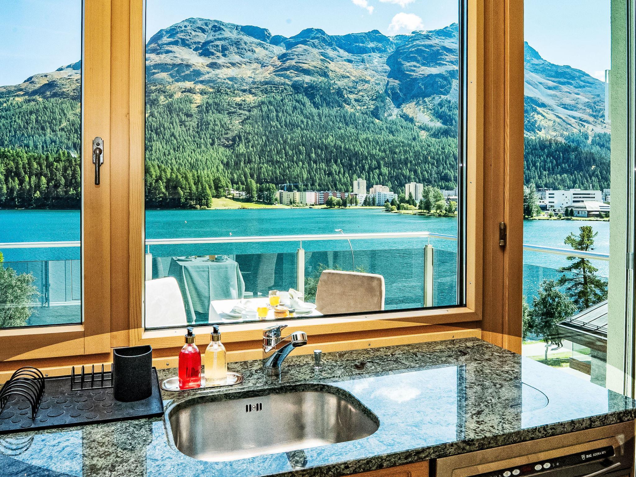 St. Moritz: Very comfortable apartment house "Chesa Spuonda Verde", 4 storeys, built in 2002. Above St. Moritz See, in a central, sunny position, 50 m from the lake, 1.5 km from the skiing area. In the house: lift, storage room for bicycles, storage room for skis, central heating system, ski boot dryer. Communal covered parking. Shop 500 m, supermarket 500 m, restaurant, bar 800 m, bakery 800 m, bicycle rental 950 m, bus stop "St. Moritz Bad, Reithalle" 450 m, railway station 850 m, indoor swimming pool 1.3 km, thermal baths "Heilbadzentrum St.Moritz" 1.5 km, lake St. Moritzer See 50 m. Golf course (18 hole) 6.1 km, surf school 5.9 km, tennis 1.6 km, indoor tennis centre 1.6 km, minigolf 1.3 km, riding stable 3.5 km, walking paths from the house 50 m, cable car 1.5 km, ski lift 1.5 km, slopes 1.5 km, ski rental 950 m, ski bus stop 450 m, ski school 1.3 km, children's ski school 1.3 km, cross country ski track 1.3 km, ice rink 600 m, children's playground 1.4 km. Nearby attractions: Segantini Museum 1.5 km, Engadiner Museum 1.3 km, Mili Weber-Haus 1.7 km, Olympia Bob Run mit Museum 1.9 km, Nietzsche Museum in Sils-Maria 10.2 km. Well-known ski regions can easily be reached: Corviglia Piz Nair 1.5 km, Corvatsch - Furtschellas 7.2 km, Diavolezza - Lagalb 18.5 km. Well-known lakes can easily be reached: St. Moritzer See 50 m, Silvaplaner See 5.9 km, Silser See 10.2 km. Hiking paths: Stazerwald & Stazersee, Corviglia Piz Nair, Muottas Muragl. The keys‘ handover takes place by the agency Interhome in St. Moritz Bad. Neighbourhood highly sensitive to noise. Quietness and good behaviour expected.