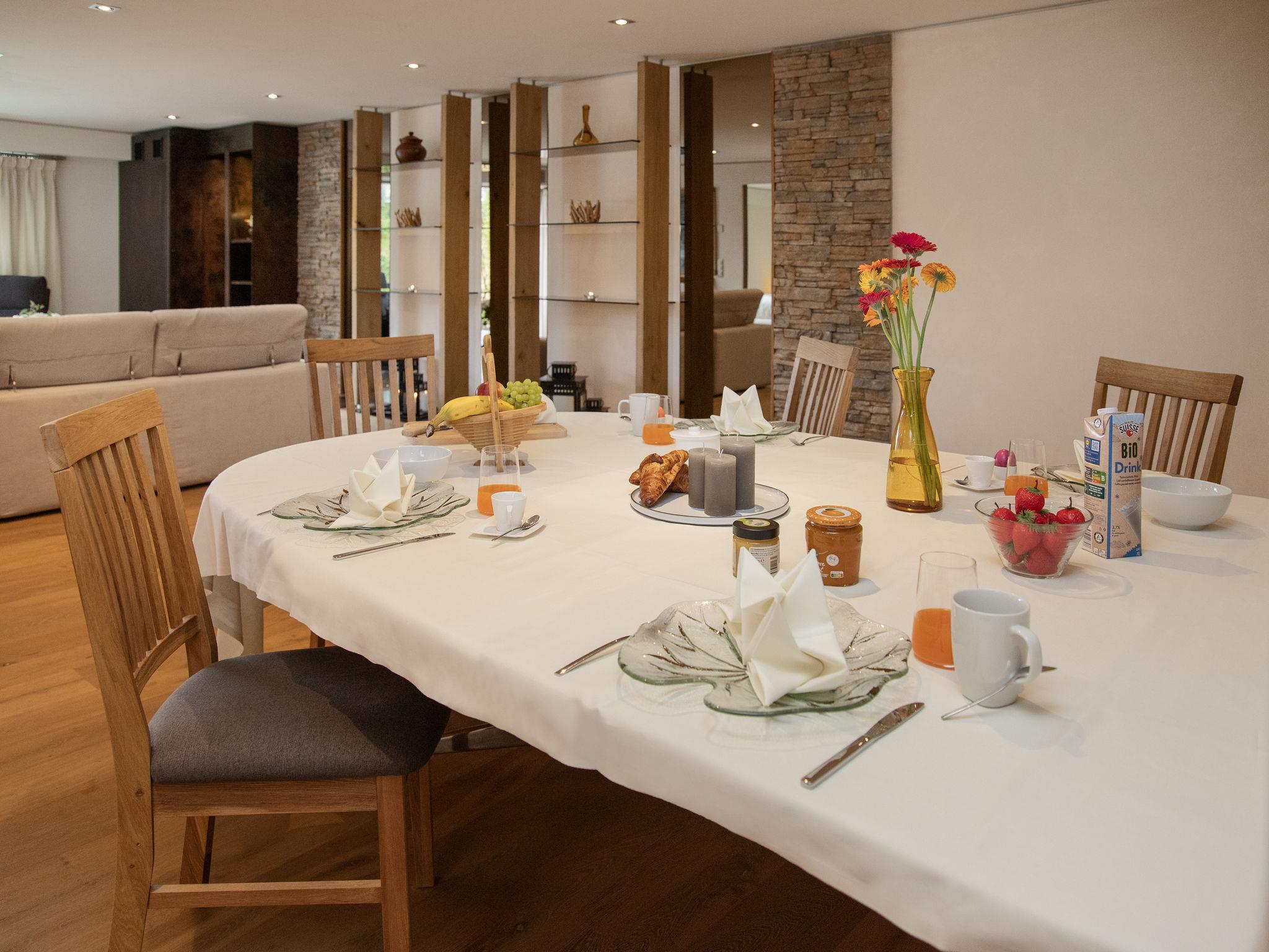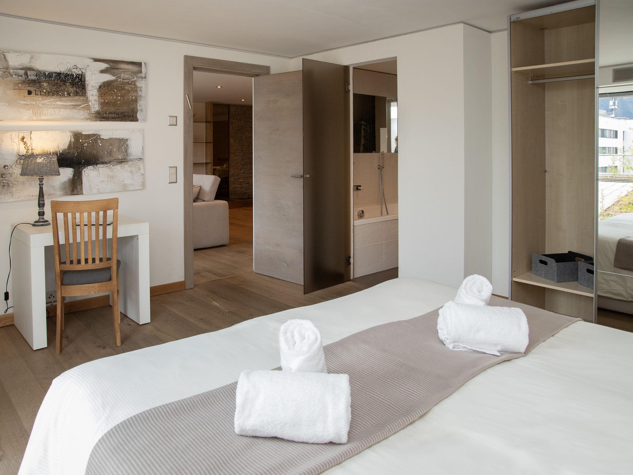 "Chesa Piz Padella - St. Moritz", 3-room apartment 120 m2 on 2nd floor. Spacious and bright, beautiful and tasteful furnishings: open living/dining room with panoramic window with dining table and TV (flat screen). Exit to the terrace, east facing position. 1 room with 2 beds (90 cm, length 200 cm), bath/shower/bidet/WC. 1 room with 1 double bed (1 x 180 cm, length 200 cm), bath/shower/bidet/WC. Open kitchen (oven, dishwasher, 4 induction hot plates, toaster, kettle, microwave, electric coffee machine, Capsules for coffee machine (Nespresso) extra, raclette grill, fondue Set (cheese)). Wooden floors. Terrace furniture. Very beautiful view of the lake, the mountains and the countryside. Facilities: iron, hair dryer. Internet (WiFi, free). Garage space n 5 at 300 m, height 205 cm, width 230 cm. Please note: not suitable for children under 6 years. Fridge without freezer, non-smokers only, non-smoking house. Maximum 1 pet/ dog allowed. -Terrasse 170m2 (only summer) - will be used by two apartments.