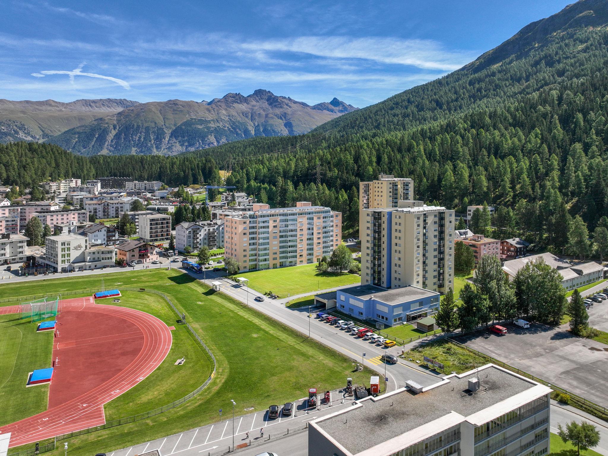 St. Moritz-Bad: Very large apartment house "Chesa Ova Cotschna", 9 storeys, renovated in 2011. In the resort 350 m from the centre of St.Moritz-Bad, in a quiet, sunny position, 300 m from the lake, 900 m from the skiing area. In the house: lift, storage room for bicycles, storage room for skis, central heating system. Shop 350 m, supermarket 800 m, restaurant 50 m, bar 350 m, bakery 600 m, café 350 m, bicycle rental 350 m, bus stop "St. Moritz Bad, Sonne" 50 m, railway station "St. Moritz" 2 km, indoor swimming pool 400 m, thermal baths "Heilbadzentrum St. Moritz", lake St. Moritzer See 300 m. Golf course (18 hole) 7.3 km, surf school 5.3 km, tennis 1 km, indoor tennis centre 1 km, minigolf 400 m, riding stable 2.8 km, walking paths from the house, cycle lane 200 m, cable car 900 m, ski lift, slopes 900 m, ski rental 350 m, ski bus stop 50 m, ski school 2 km, children's ski school 2 km, sled run 5.7 km, cross country ski track 100 m, ice rink 450 m, children's playground 500 m. Nearby attractions: Segantini Museum 2.2 km, Engadiner Museum 1.2 km, Mili Weber-Haus 2.9 km, Olympia Bob Run mit Museum 2.6 km, Nietzsche Museum in Sils-Maria 9.5 km. Well-known ski regions can easily be reached: Corviglia Piz Nair 900 m, Corvatsch - Furtschellas 6.5 km, Diavolezza - Lagalb 20 km. Well-known lakes can easily be reached: St.Moritzer See 300 m, Silvaplaner See 5.2 km, Silser See 9.5 km. Hiking paths: Stazerwald & Stazersee, Corviglia Piz Nair, Muottas Muragl. Please note: the keys‘ handover takes place by the agency Interhome in St. Moritz Bad. Additional accommodations can be booked.