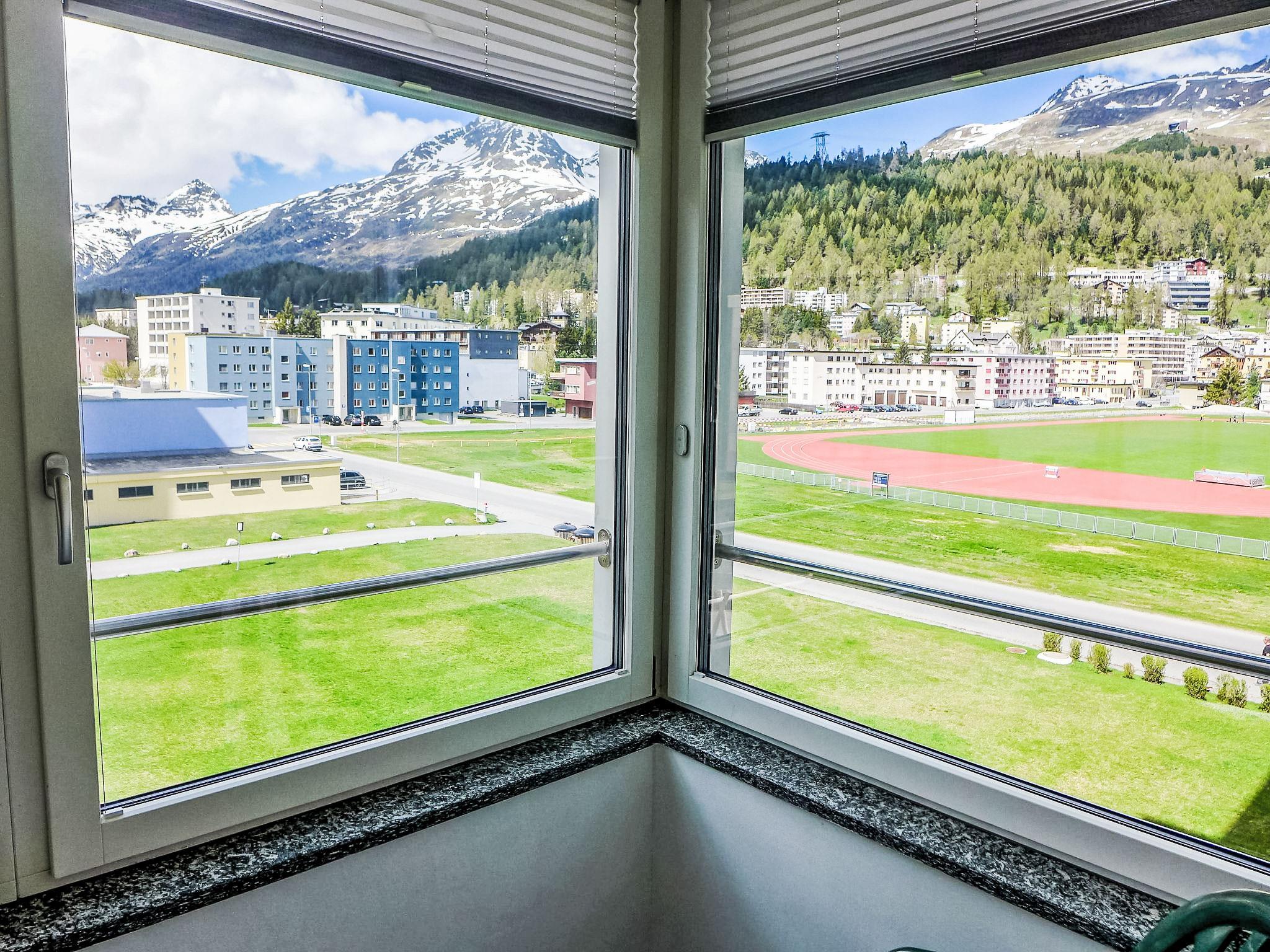 St. Moritz-Bad: Very large apartment house "Chesa Ova Cotschna", 9 storeys, renovated in 2011. In the resort 350 m from the centre of St.Moritz-Bad, in a quiet, sunny position, 300 m from the lake, 900 m from the skiing area. In the house: lift, storage room for bicycles, storage room for skis, central heating system. Shop 350 m, supermarket 800 m, restaurant 50 m, bar 350 m, bakery 600 m, café 350 m, bicycle rental 350 m, bus stop "St. Moritz Bad, Sonne" 50 m, railway station "St. Moritz" 2 km, indoor swimming pool 400 m, thermal baths "Heilbadzentrum St. Moritz", lake St. Moritzer See 300 m. Golf course (18 hole) 7.3 km, surf school 5.3 km, tennis 1 km, indoor tennis centre 1 km, minigolf 400 m, riding stable 2.8 km, walking paths from the house, cycle lane 200 m, cable car 900 m, ski lift, slopes 900 m, ski rental 350 m, ski bus stop 50 m, ski school 2 km, children's ski school 2 km, sled run 5.7 km, cross country ski track 100 m, ice rink 450 m, children's playground 500 m. Nearby attractions: Segantini Museum 2.2 km, Engadiner Museum 1.2 km, Mili Weber-Haus 2.9 km, Olympia Bob Run mit Museum 2.6 km, Nietzsche Museum in Sils-Maria 9.5 km. Well-known ski regions can easily be reached: Corviglia Piz Nair 900 m, Corvatsch - Furtschellas 6.5 km, Diavolezza - Lagalb 20 km. Well-known lakes can easily be reached: St.Moritzer See 300 m, Silvaplaner See 5.2 km, Silser See 9.5 km. Hiking paths: Stazerwald & Stazersee, Corviglia Piz Nair, Muottas Muragl. Please note: the keys‘ handover takes place by the agency Interhome in St. Moritz Bad. Additional accommodations can be booked.