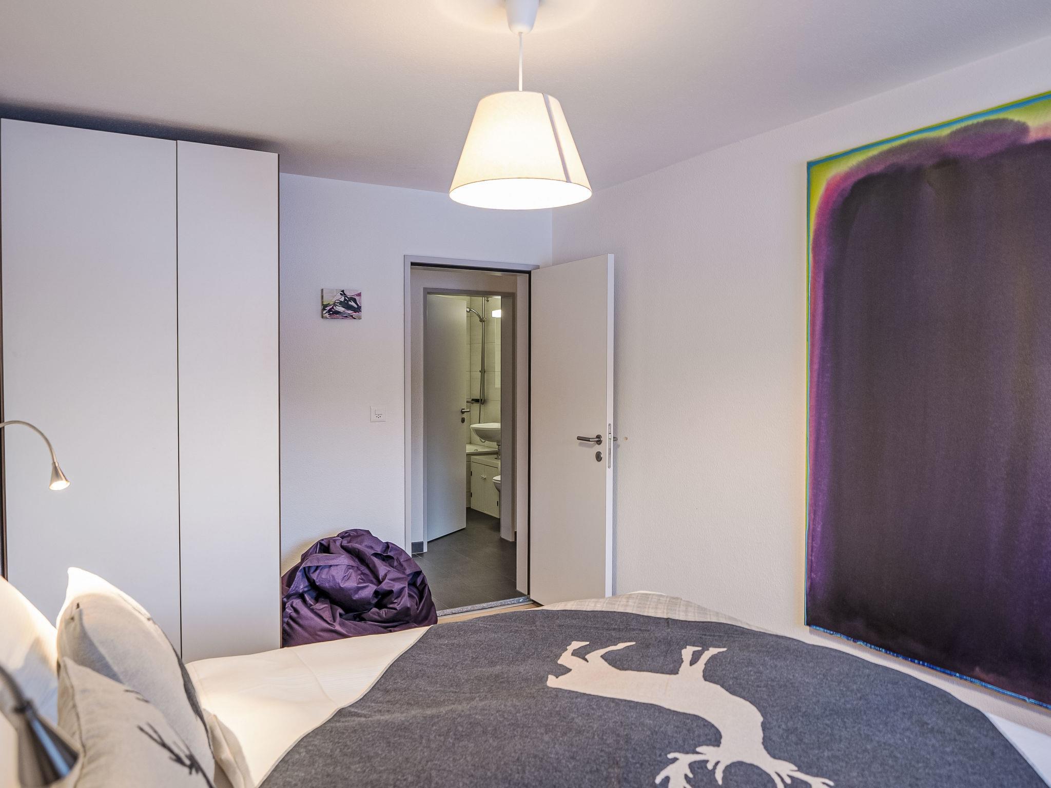 "Casa Polo", 3-room apartment 105 m2 on 3rd floor. Spacious and bright, partly renovated in 2020, modern and cosy furnishings: large living/dining room with dining table and TV (flat screen). Exit to the balcony. 1 double bedroom with 1 french bed (1 x 160 cm, length 200 cm). 1 room with 1 double bed (2 x 90 cm, length 200 cm). Open kitchen (oven, dishwasher, 4 ceramic glass hob hotplates, toaster, kettle, freezer, electric coffee machine, raclette grill, fondue Set (chinoise, cheese)). Bath/WC, shower/WC. Heating. Natural stone floors. Small balcony 6 m2, west facing position, small balcony 6 m2, east facing position. Balcony furniture. Beautiful view of the lake, the mountains and the countryside. Facilities: iron, hair dryer. Internet (WiFi, free). Parking space n 4 (2 cars) at the house. Please note: suitable for families. Non-smokers only, non-smoking house. Maximum 1 pet/ dog allowed.