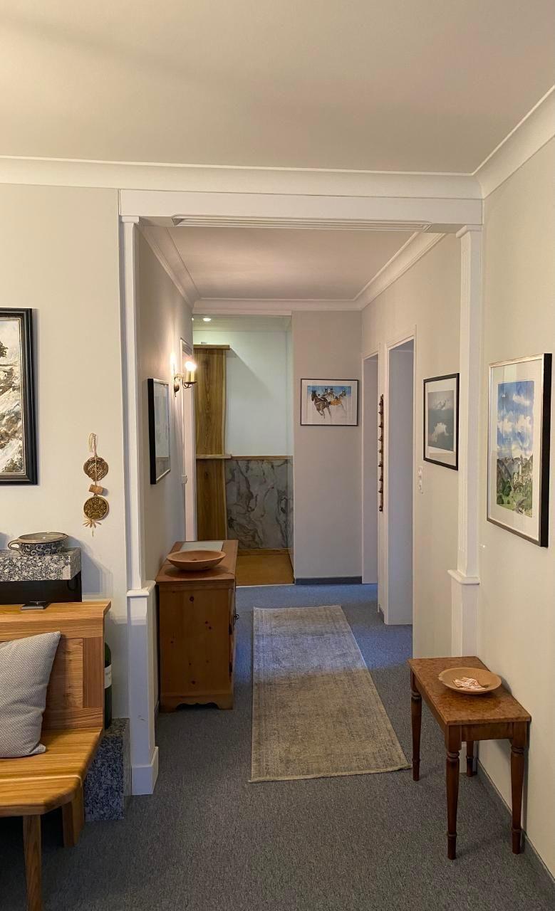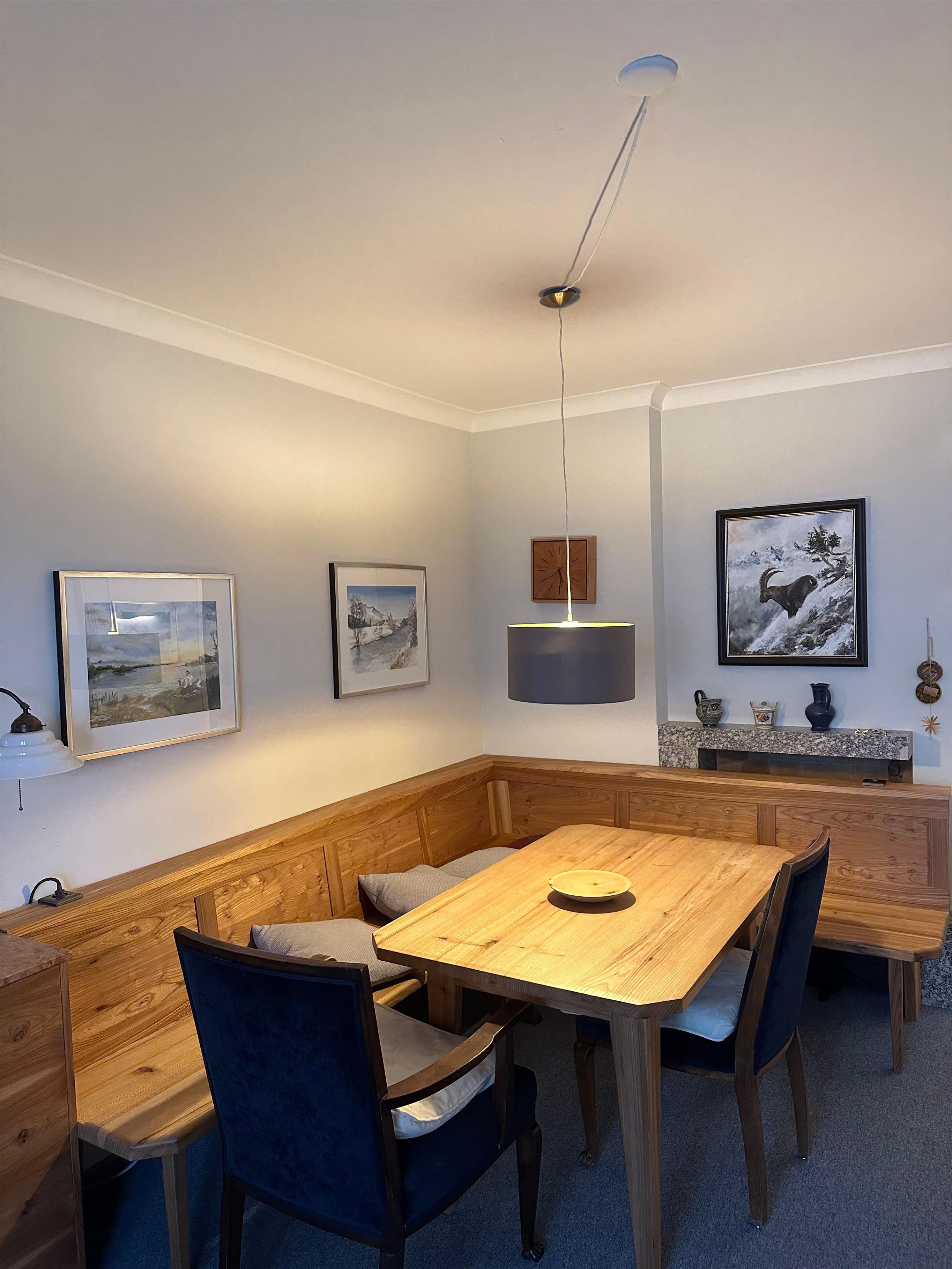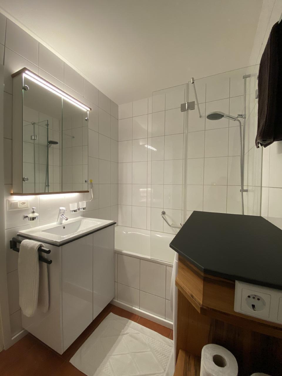 3-room flat (84 m2) on the 3rd floor of a block of flats. Very good location, very central as a starting point for all activities! Flat with living room, 2 bedrooms (1 x 2 single beds, 1 x double bed), eat-in kitchen (small) with dishwasher, microwave, oven, fridge, coffee machine. Bath/WC. Balcony. Sat-TV, internet, W-Lan, radio and telephone. Lift. Ski room and laundry room for shared use. Underground car park is not accessible with roof box or ski rack on larger cars due to the height.