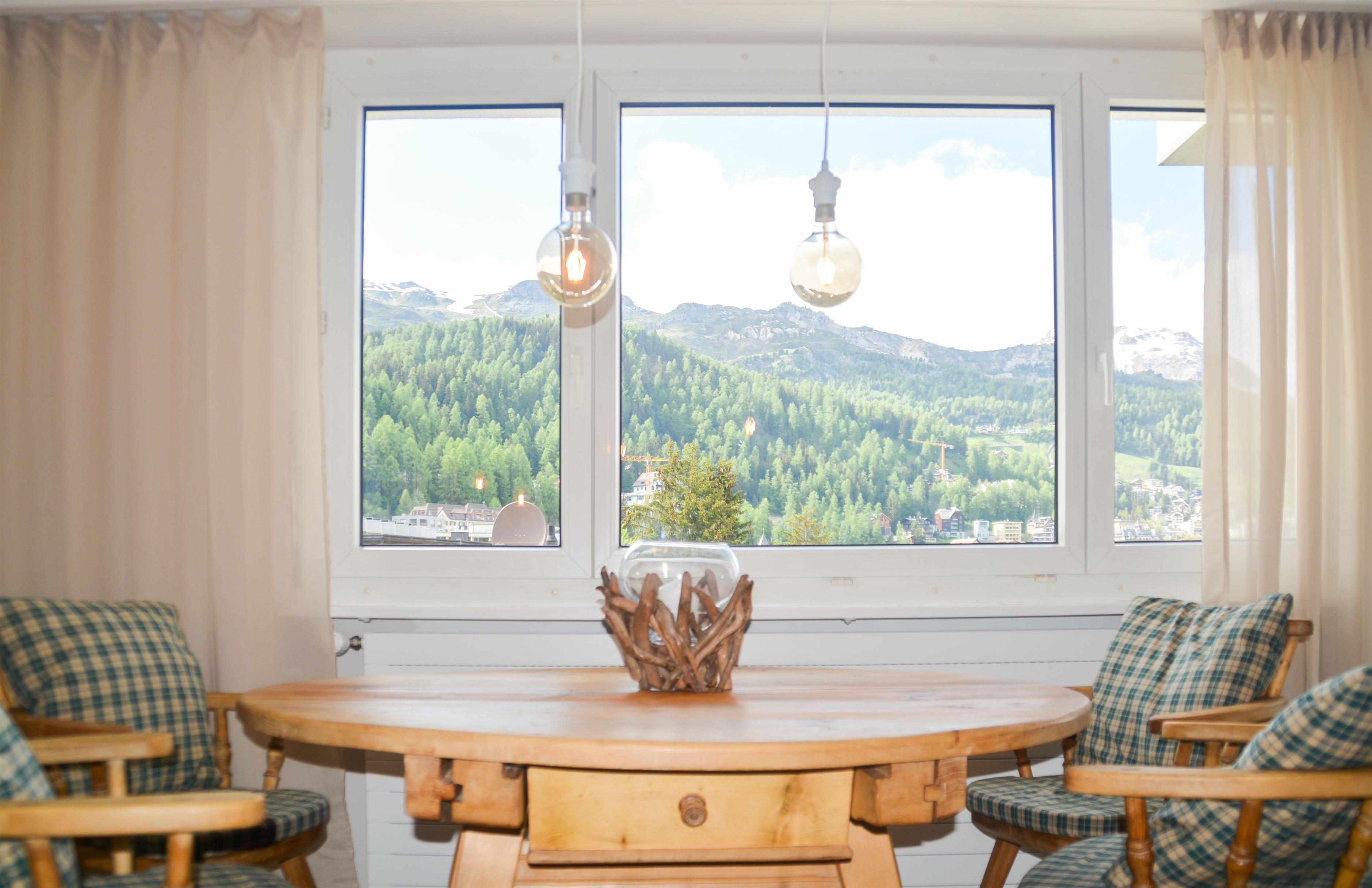 Experience your dream holiday in our 55 m² flat in the heart of St. Moritz Bad, located on the 4th floor, where a breathtaking view of the lake and mountains awaits you. From the balcony, you can enjoy unrivalled panoramic views over St. Moritz and the majestic mountains, while the famous Corviglia ski slope is right in sight from the dining table. This holiday flat promises a time-out in a class of its own, combined with the luxury that only St. Moritz can offer.