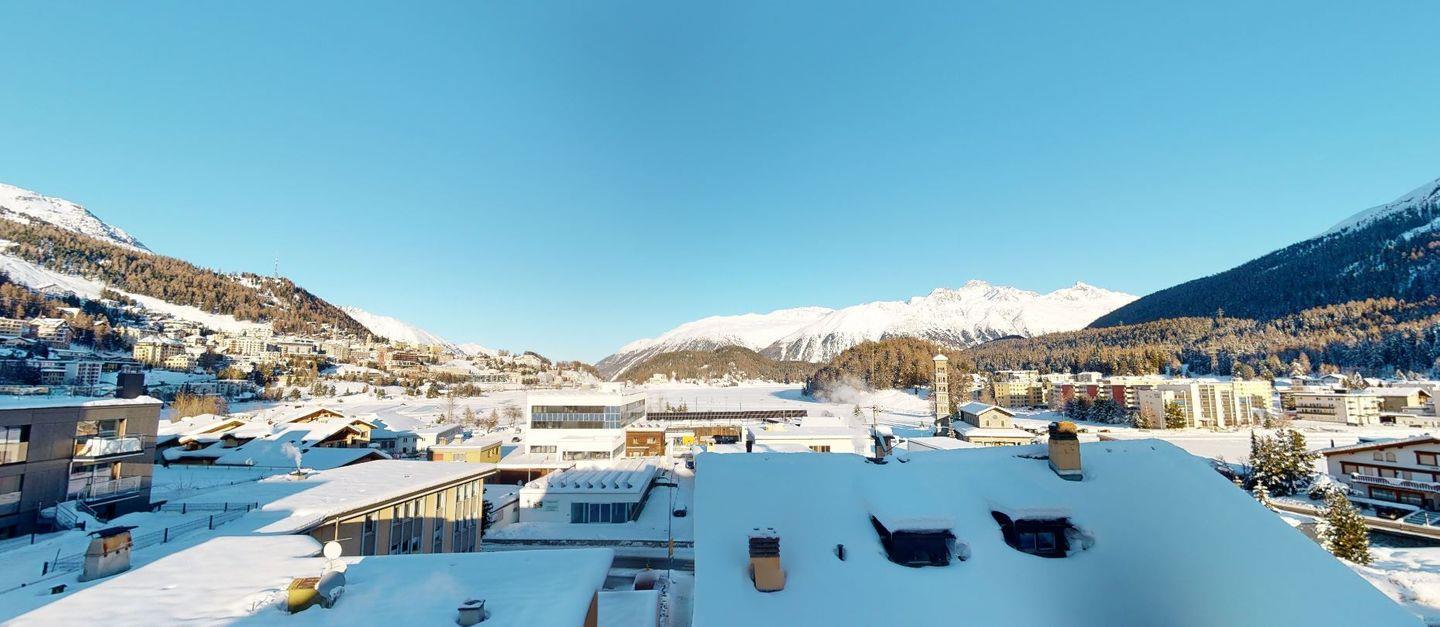 Gepflegte 4.5 Zimmer Ferienwohnung im obersten Stock mit eindrucksvollem Panoramablick auf St. Moritz-Dorf, den St. Moritzersee und die Bergwelt des Oberengadins. Wohn- /Esszimmer mit Balkon. Kamin-Cheminee. Separate Küche. 3 Doppelschlafzimmer. 1 Badezimmer sowie separate Dusche/WC. Lift.