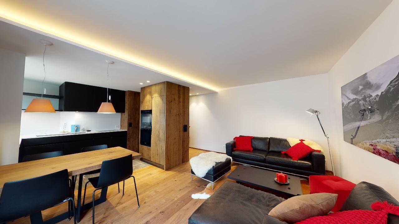 Inspirierendes Design (mountainstyle) widerspiegelt dieses super attraktive Ferienapartment im 2. Stock. Separate Garderobe. Gemütliches Wohn- /Esszimmer mit offener Küche. Gästetoilette. Elternschlafzimmer mit Ankleide und Dusche/WC sowie Balkon. 1 Doppelschlafzimmer mit 2 separaten Betten. Bad/Dusche. Lift. 1 Garagenparkplatz im Parkhaus "Quadrellas", 4 Gehminuten entfernt von der Ferienwohnung inklusive. Weitere Parkplätze gegen Gebühr möglich.