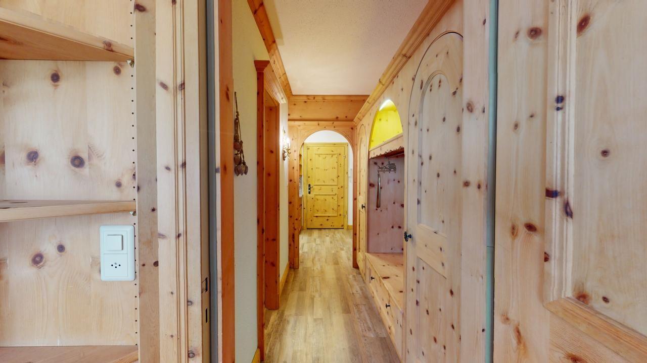Genießen Sie einen unvergesslichen Aufenthalt in dieser authentischen und gemütlichen 2,5-Zimmer-Ferienwohnung im 2. Obergeschoss. Der angenehme Duft von Arvenholz verleiht der Wohnung eine besondere Atmosphäre. Das Wohn- und Esszimmer bietet einen optisch abgetrennten Essbereich sowie praktische, integrierte Schrankbetten (80 x 200). Entspannen Sie auf dem überdachten Balkon mit schöner Aussicht. Die gut ausgestattete Küche und das Badezimmer mit Dusche sorgen für Komfort. Ein separates Doppelschlafzimmer rundet das Angebot ab. Ein Lift im Ferienhaus erleichtert den Zugang, und Sie profitieren von einem Parkplatz in einer Garagenbox. Für aktive Gäste steht ein Fitnessraum zur öffentlichen Nutzung im Ferienhaus zur Verfügung.