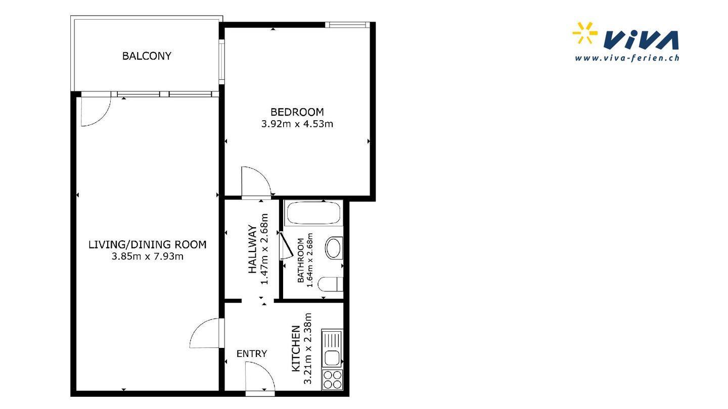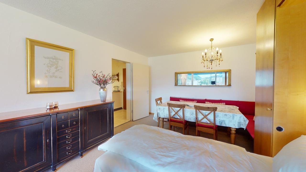 Praktische, grosszügige 2.5 - Zimmer-Ferienwohnung im 3. Obergeschoss. Eingang mit renovierter Küche. Wohn- /Esszimmer mit eingebauten Schrankbetten 80 x 200. Separates Doppelschlafzimmer. Überdachter Balkon. Badezimmer mit Dusche/WC. Im Ferienhaus befindet sich ein Lift. Beschränkte Anzahl Aussenparkplätze (max. 1 Auto/Wohnung, nicht reserviert). Fitnessraum zur öffentlichen Nutzung befindet sich im Ferien-Wohnhaus.