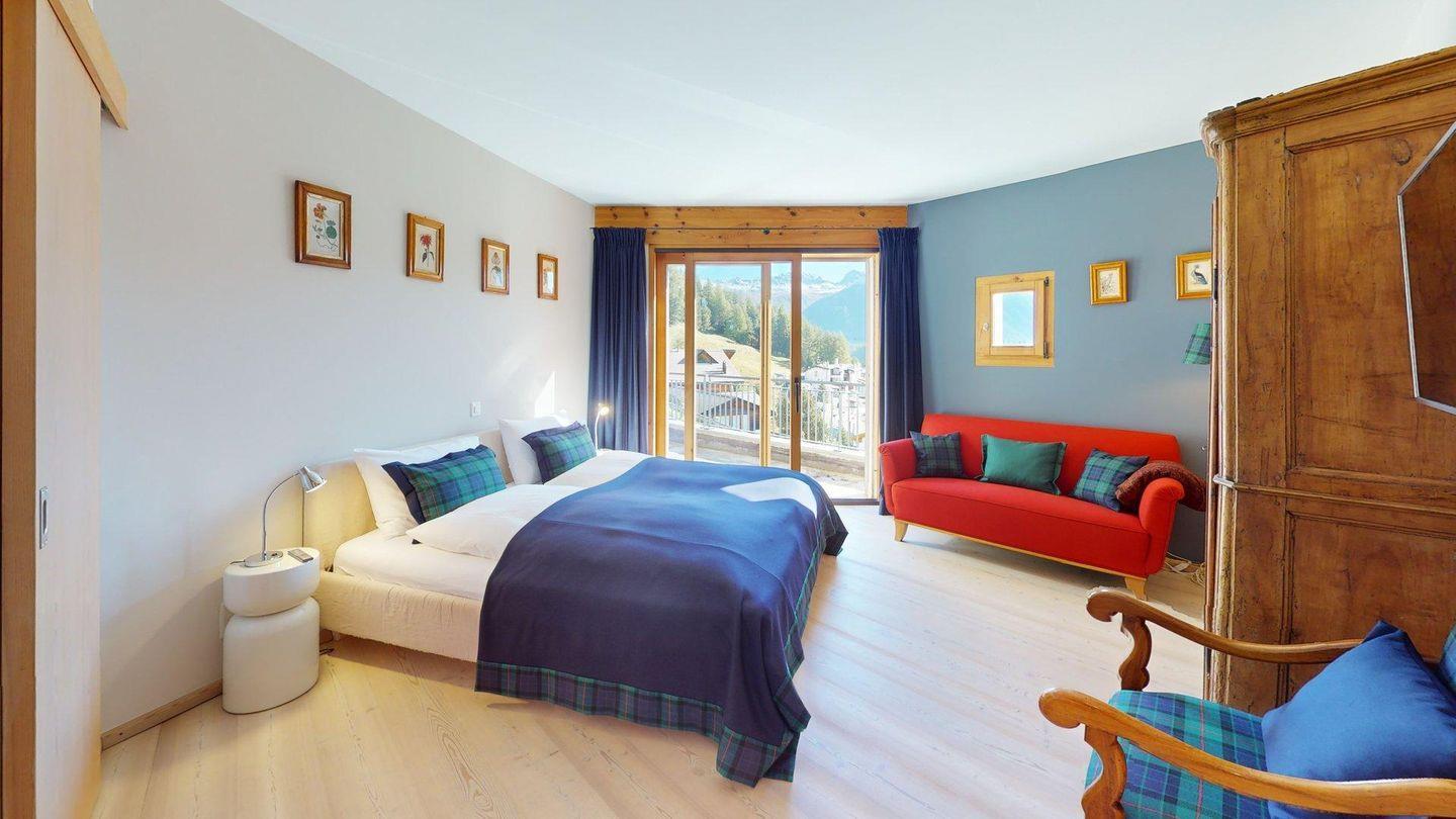 Drei elegant eingerichtete Doppelschlafzimmer mit jeweils eigenem en Suite Badezimmer mit Dusche/WC/Badewanne sorgen für Privatsphäre und Wohlbefinden. Jedes Schlafzimmer verfügt über einen eigenen TV. Ein Balkon auf dieser Ebene erweitert den Wohnkomfort und bietet herrliche Panoramablicke.