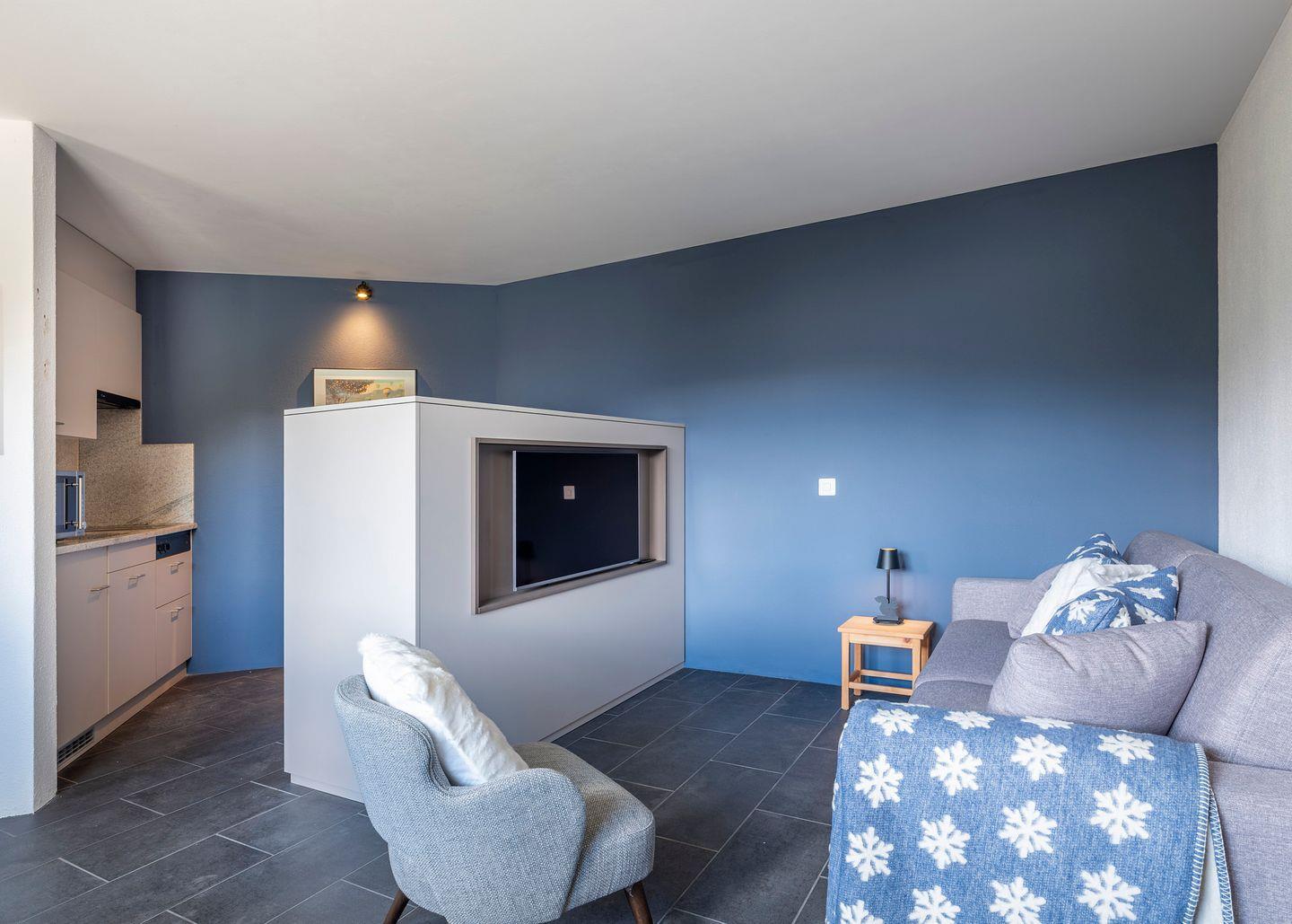 Die stilvolle Einliegerwohnung verfügt über ein hochwertiges Schlafsofa, eine separate Küche sowie ein eigenes Badezimmer – ideal für Gäste oder als zusätzlicher Rückzugsbereich. Zwei Tiefgaragenplätze ( Breite: 2.35 Meter, Höhe: 2.05 Meter) runden das Angebot ab und gewährleisten einen sorgenfreien Aufenthalt.